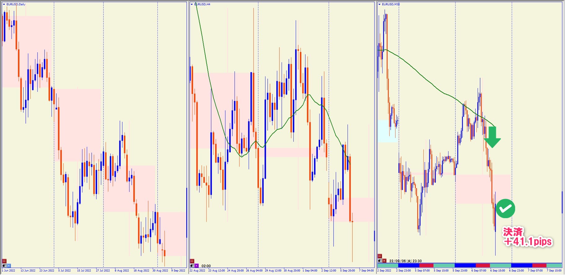 2022.9.6 19:30 EURUSD ショート +41.1pips