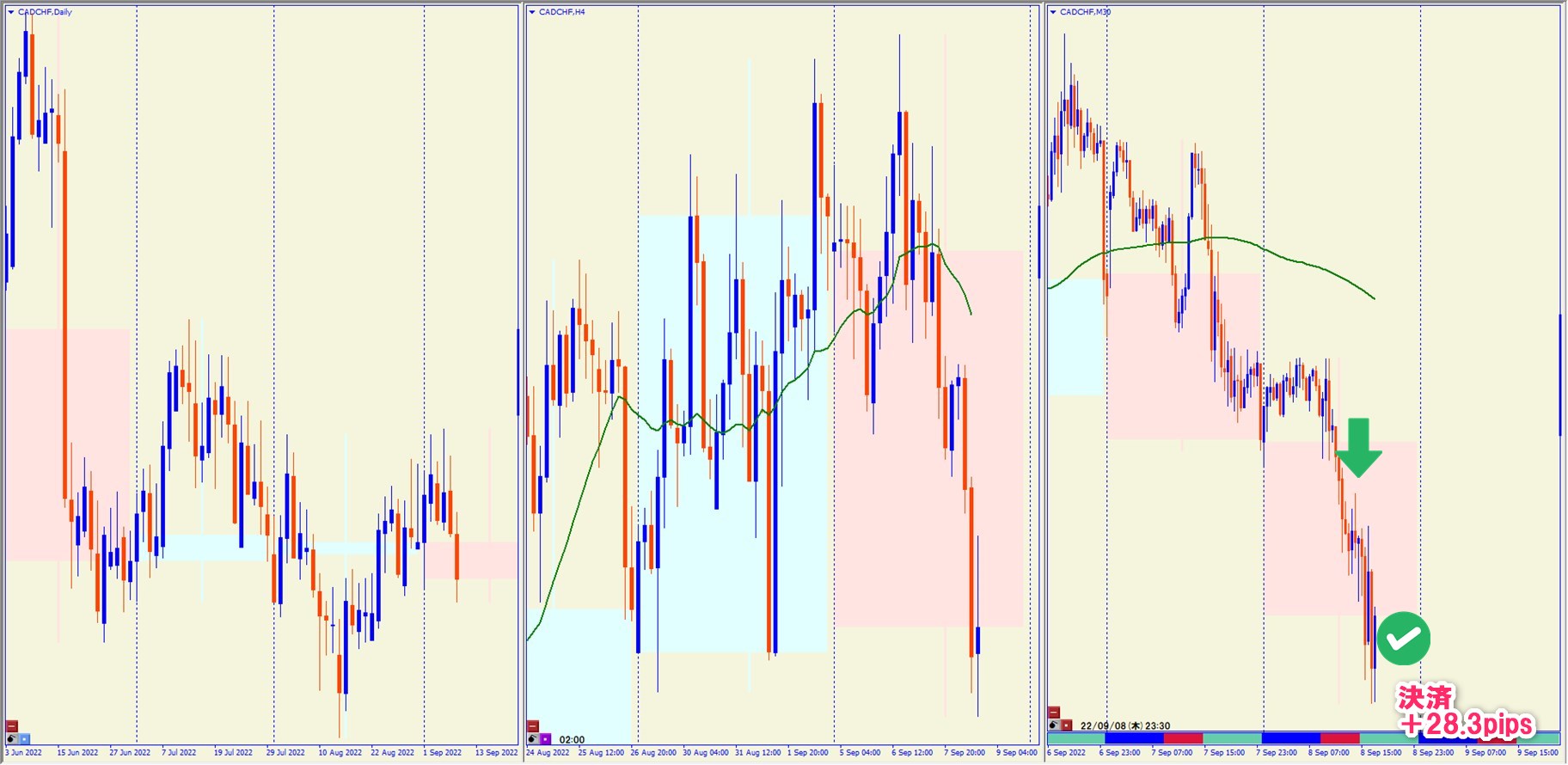 2022.9.8 18:00 CADCHF ショート +28.3pips