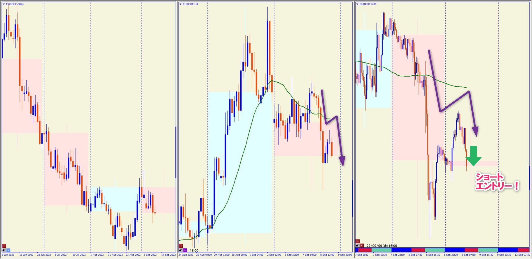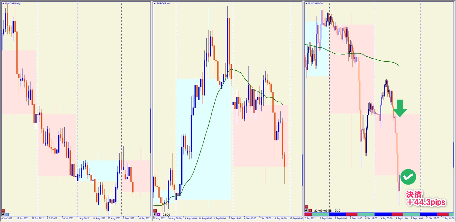 2022.9.9 16:00 EURCHF ショート +44.3pips