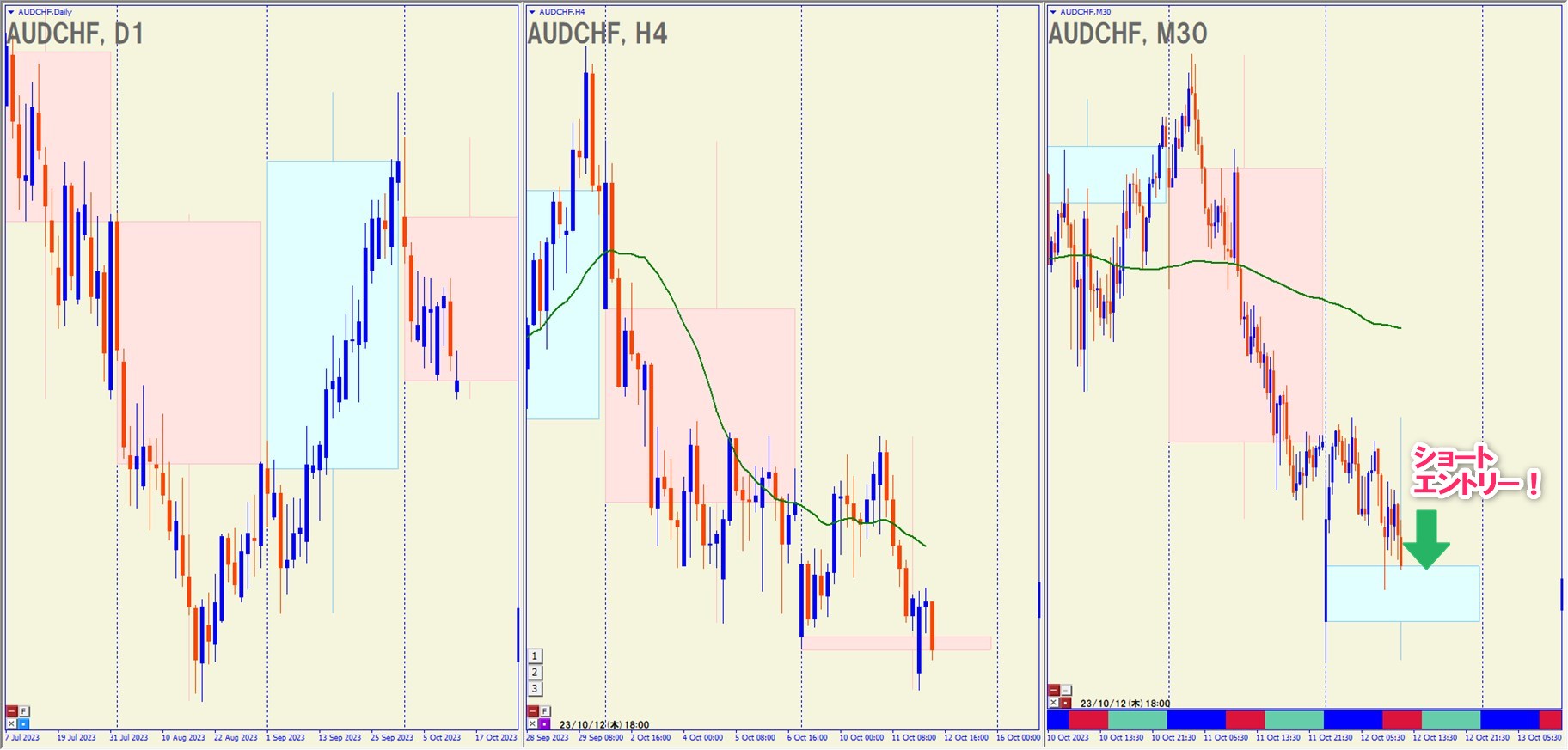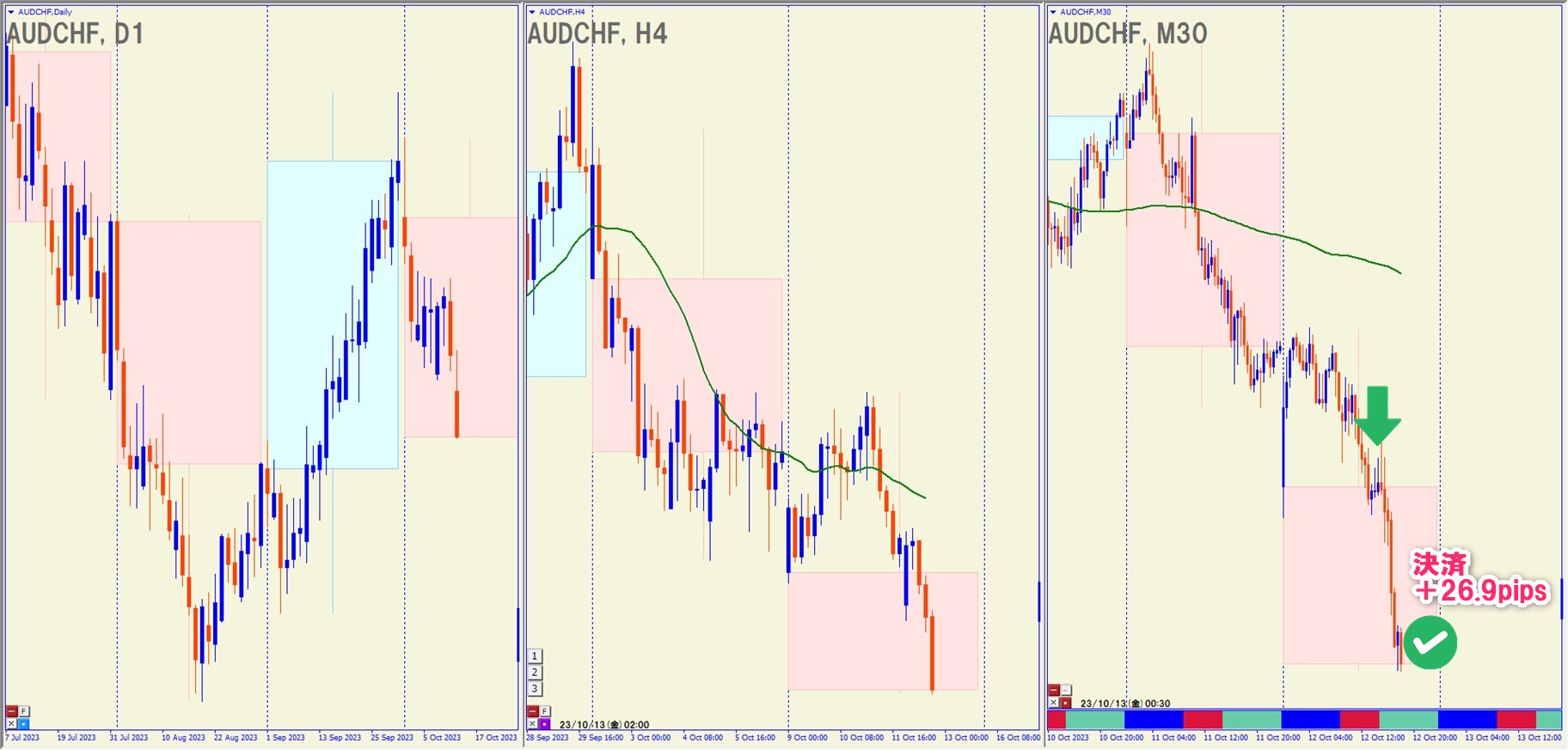 2023.10.12(木)18:00 AUDCHF ショート +26.9pips