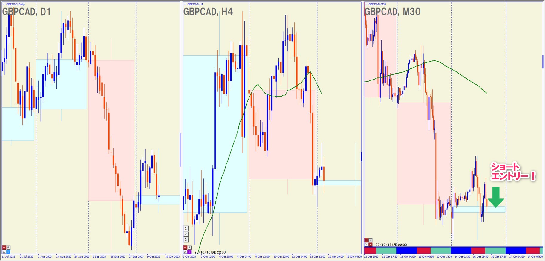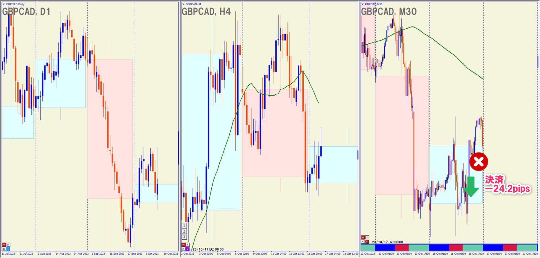 2023.10.16(月)22:00 GBPCAD ショート -24.2pips