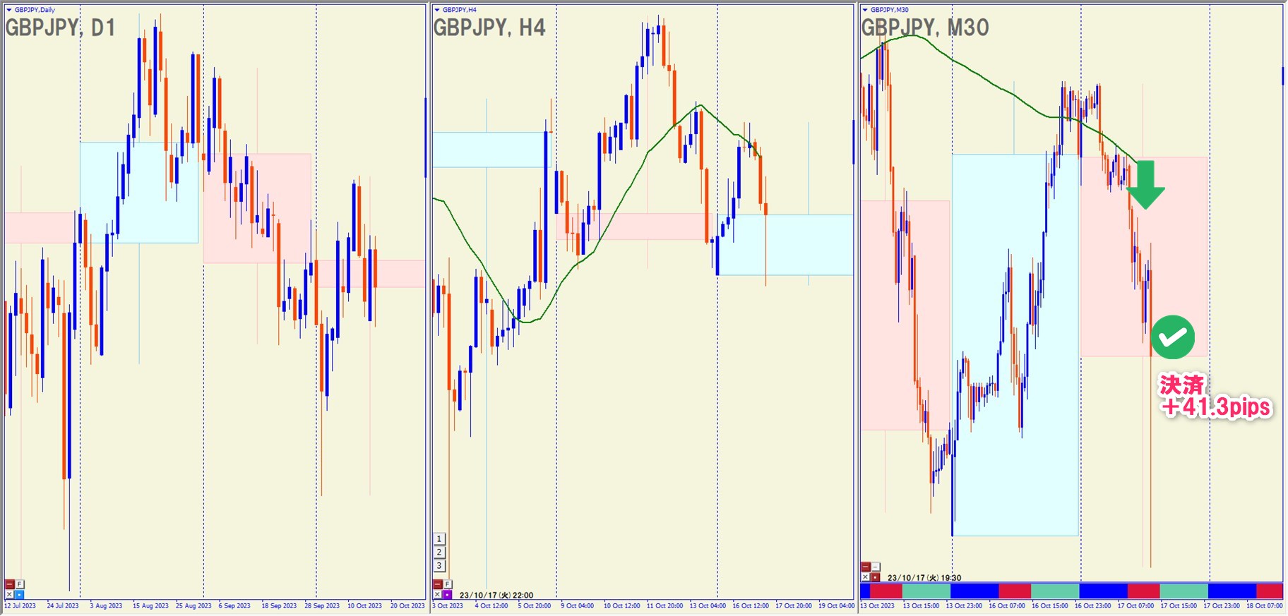 2023.10.17(火)15:30 GBPJPY ショート +41.3pips