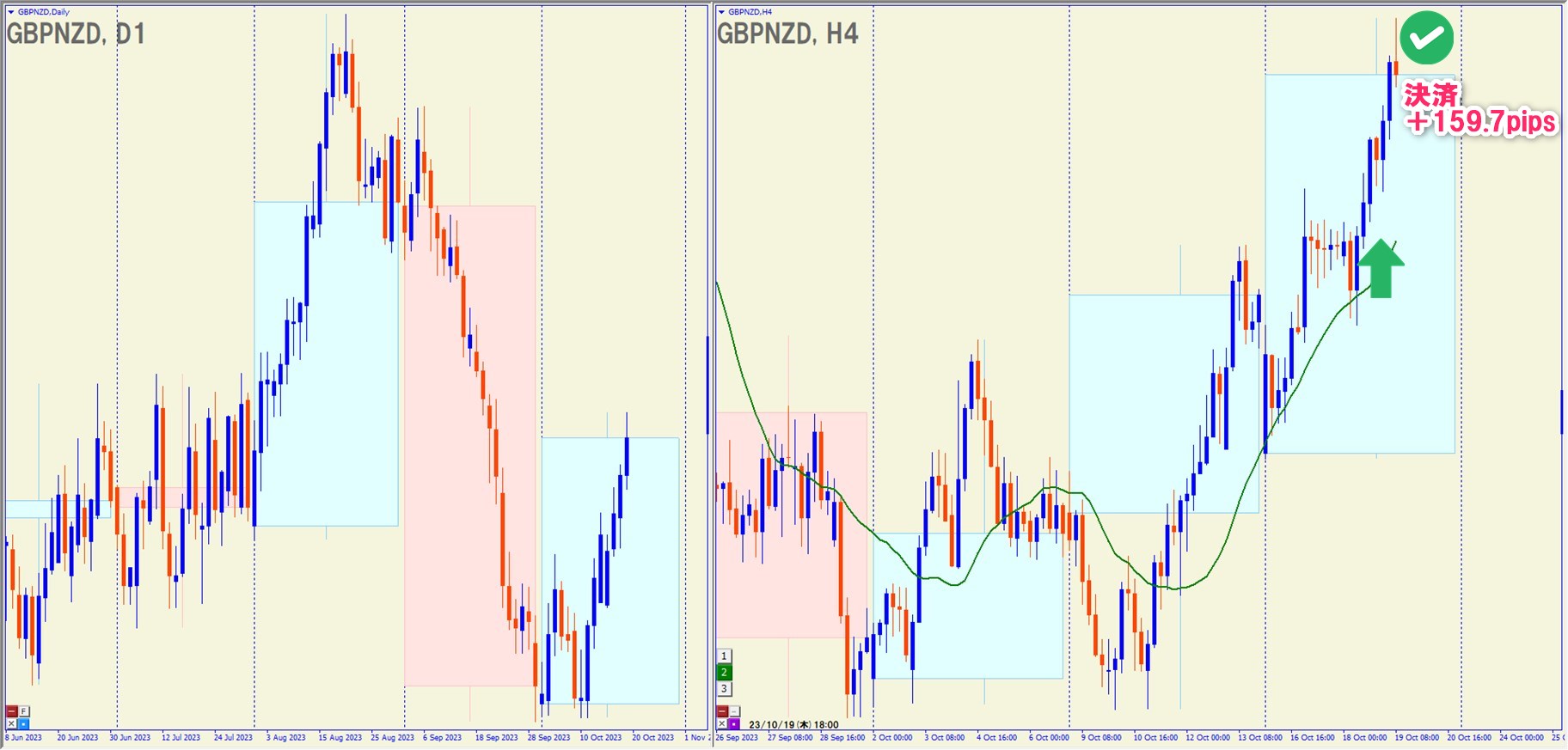 2023.10.18(水)18:00 GBPNZD ロング +159.7pips