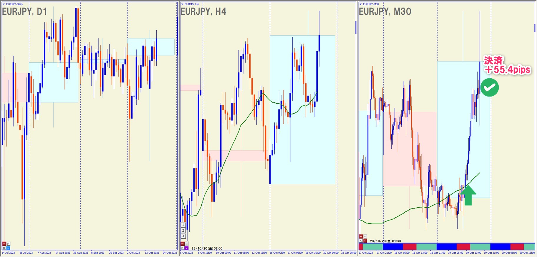 2023.10.19(木)17:30 EURJPY ロング +55.4pips