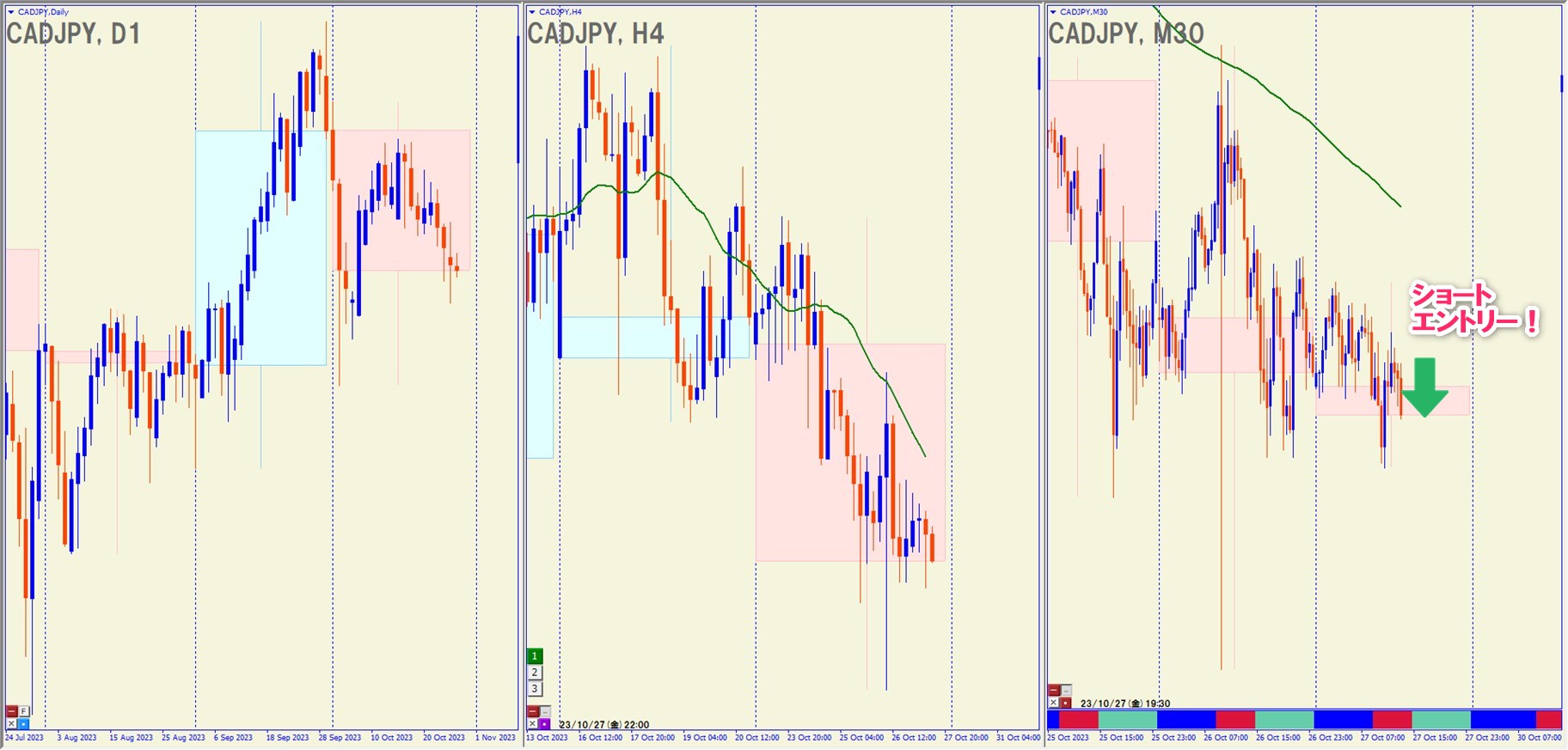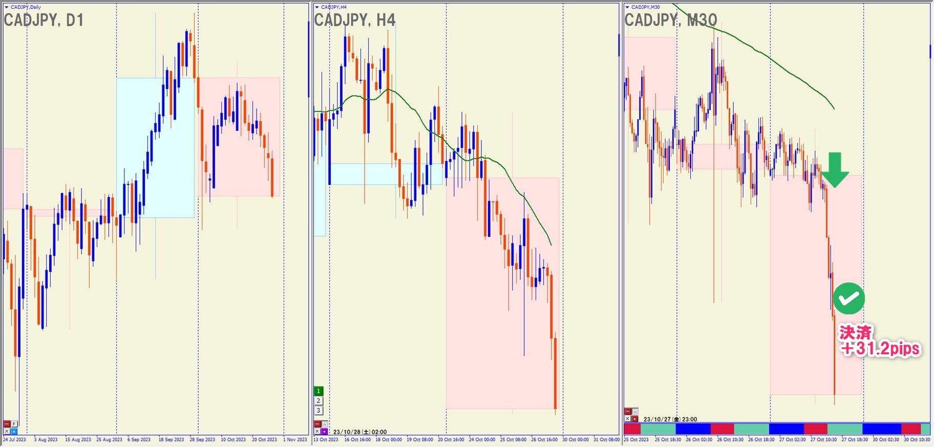 2023.10.27(金)19:30 CADJPY ショート +31.2pips