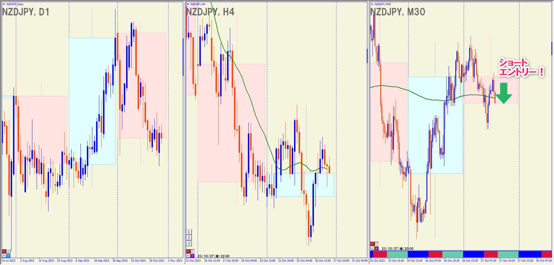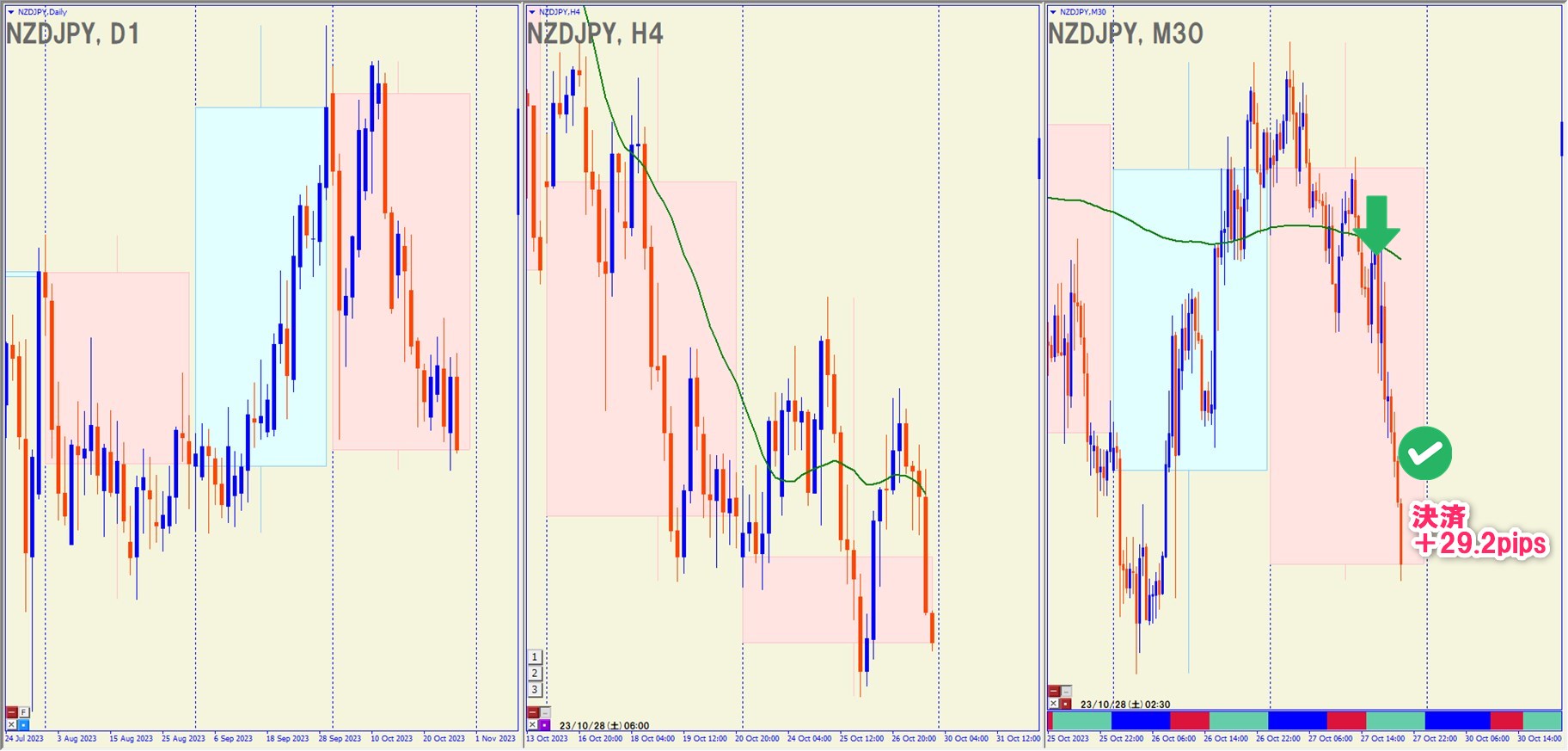2023.10.27(金)20:00 NZDJPY ショート +29.2pips
