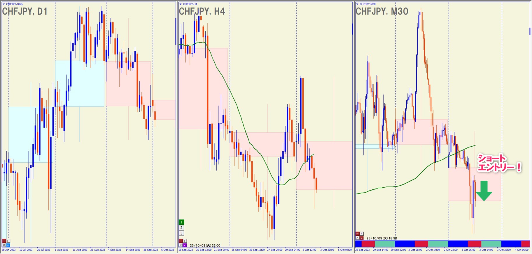 2023.10.3(火)18:30 CHFJPY ショート +78.9pips