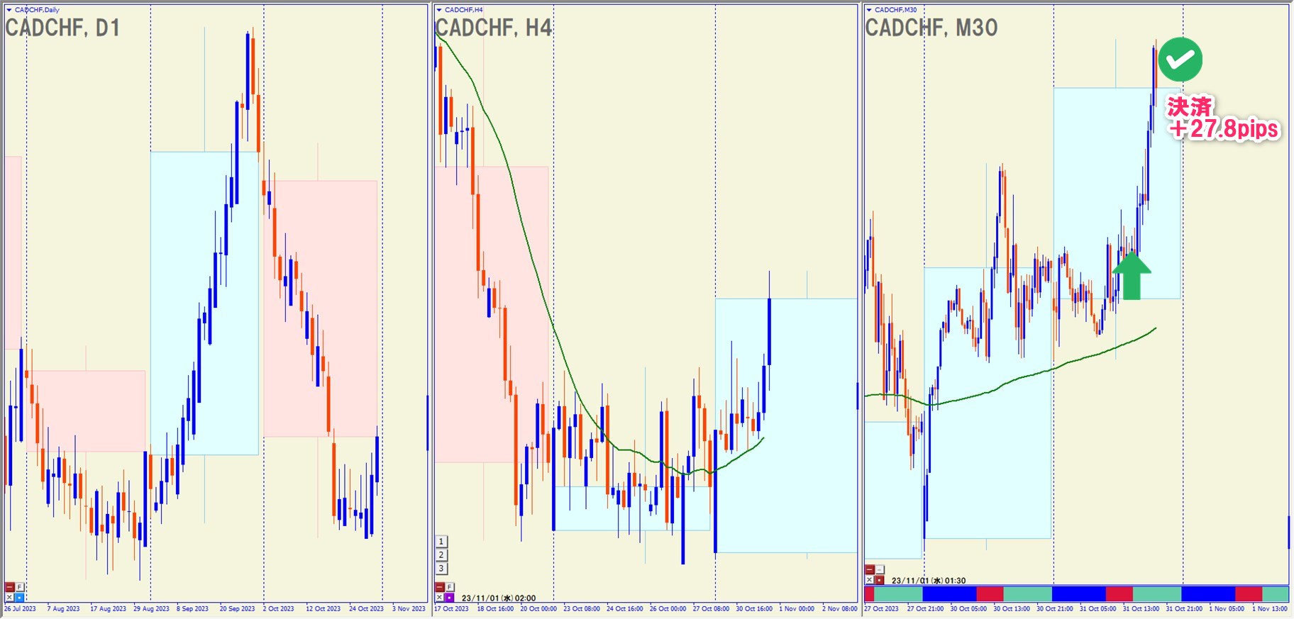 2023.10.31(火)18:30 CADCHF ロング +27.8pips