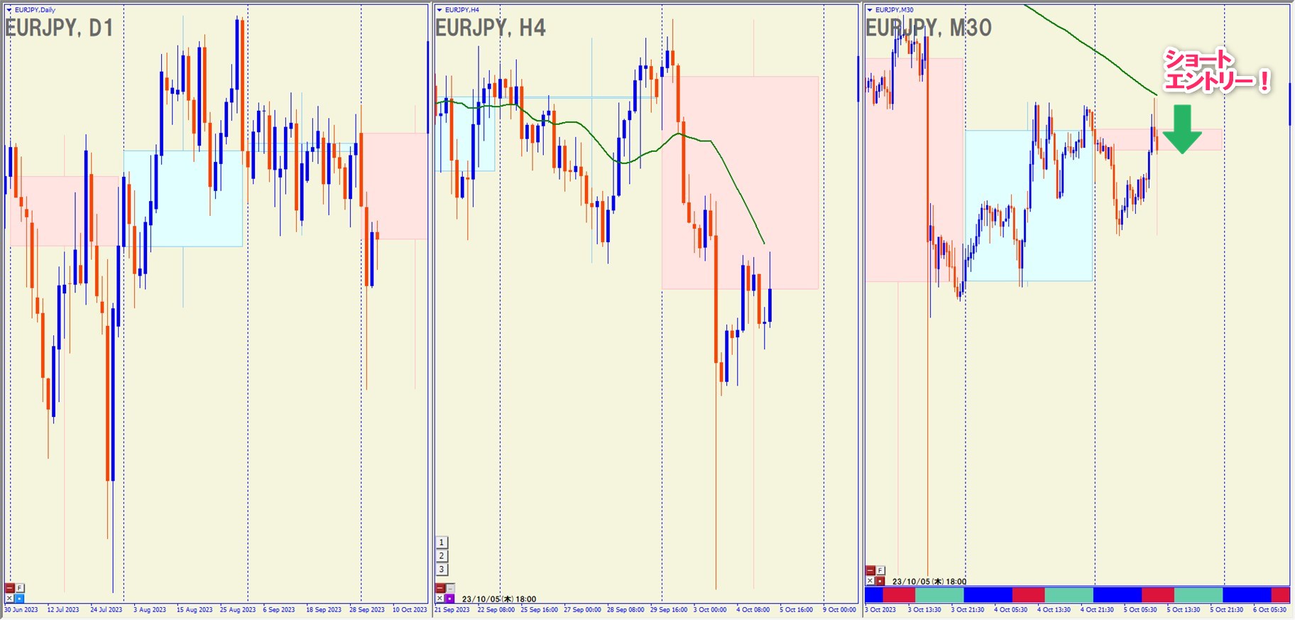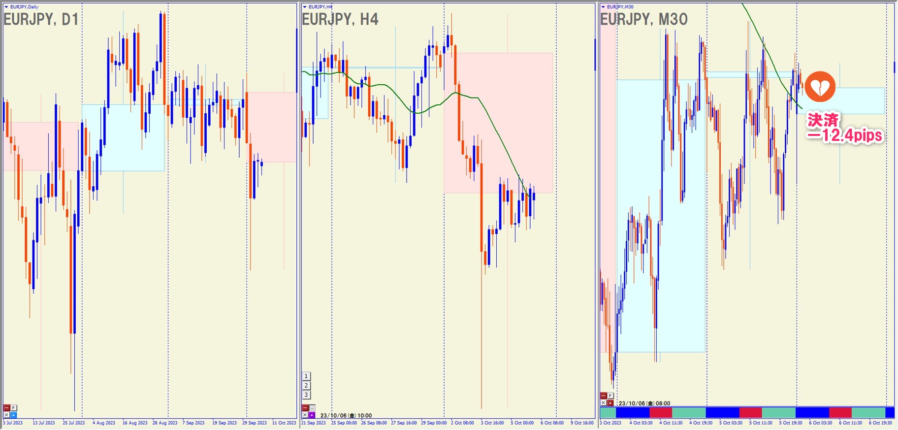 2023.10.5(木)18:00 EURJPY ショート -12.4pips