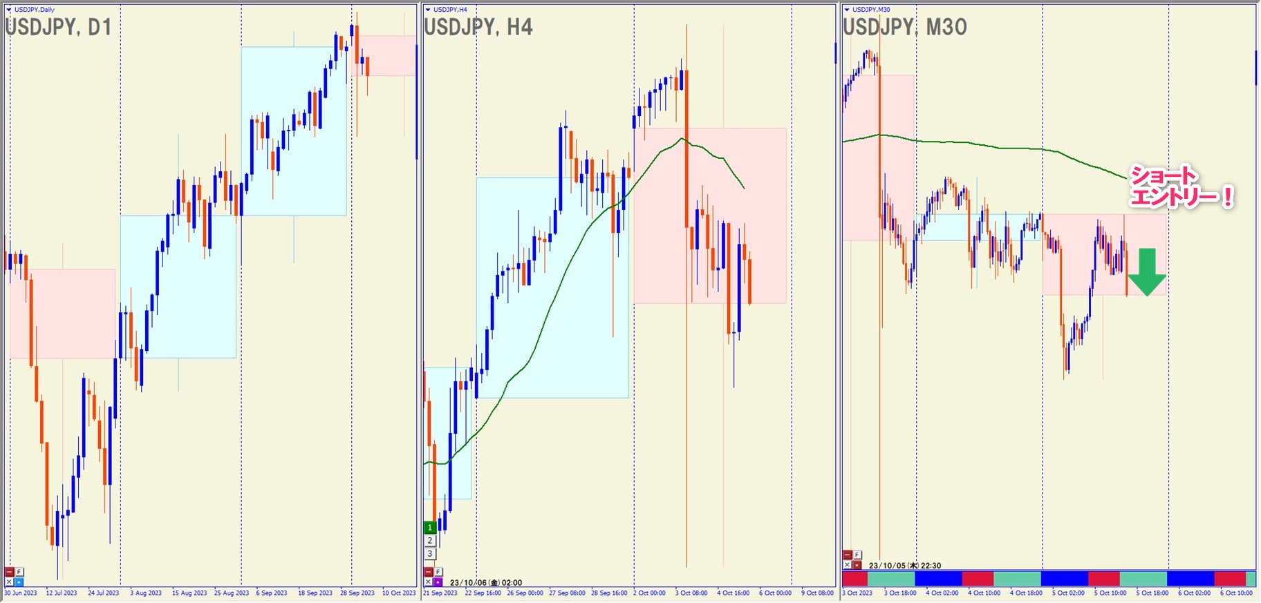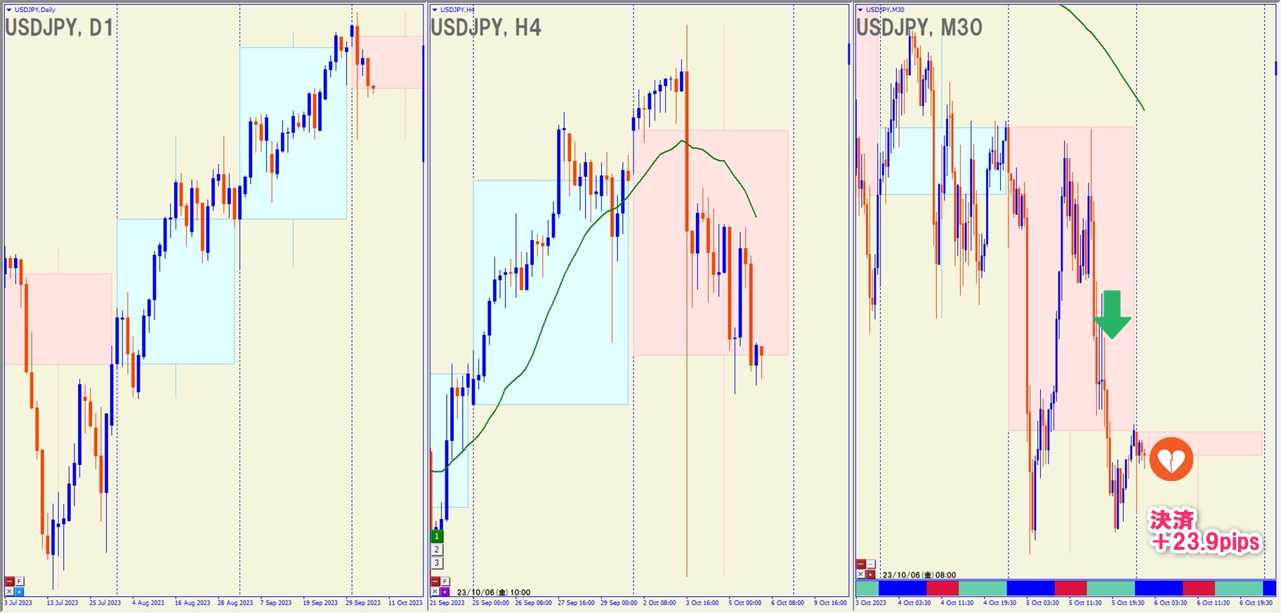 2023.10.5(木)22:30 USDJPY ショート +23.9pips