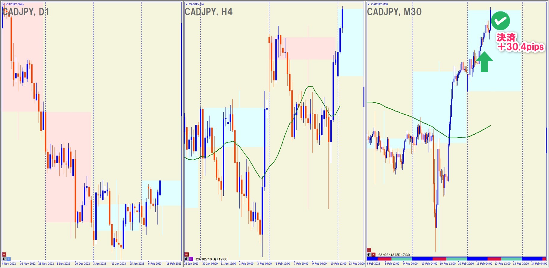 2023.2.13(月)12:30 CADJPY ロング +30.4pips
