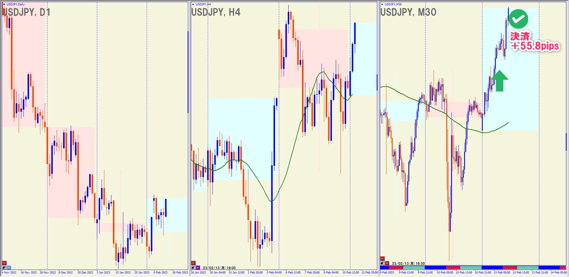 2023.2.13(月)12:30 USDJPY ロング +55.8pips