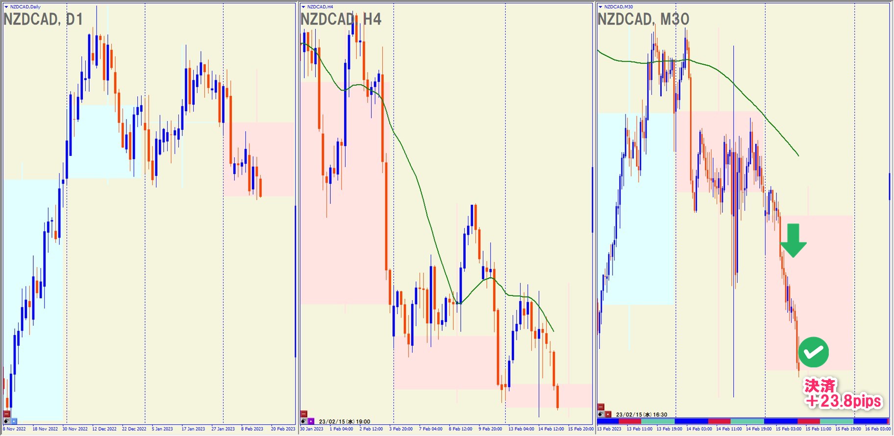 2023.2.15(水)11:30 NZDCAD ショート +23.8pips