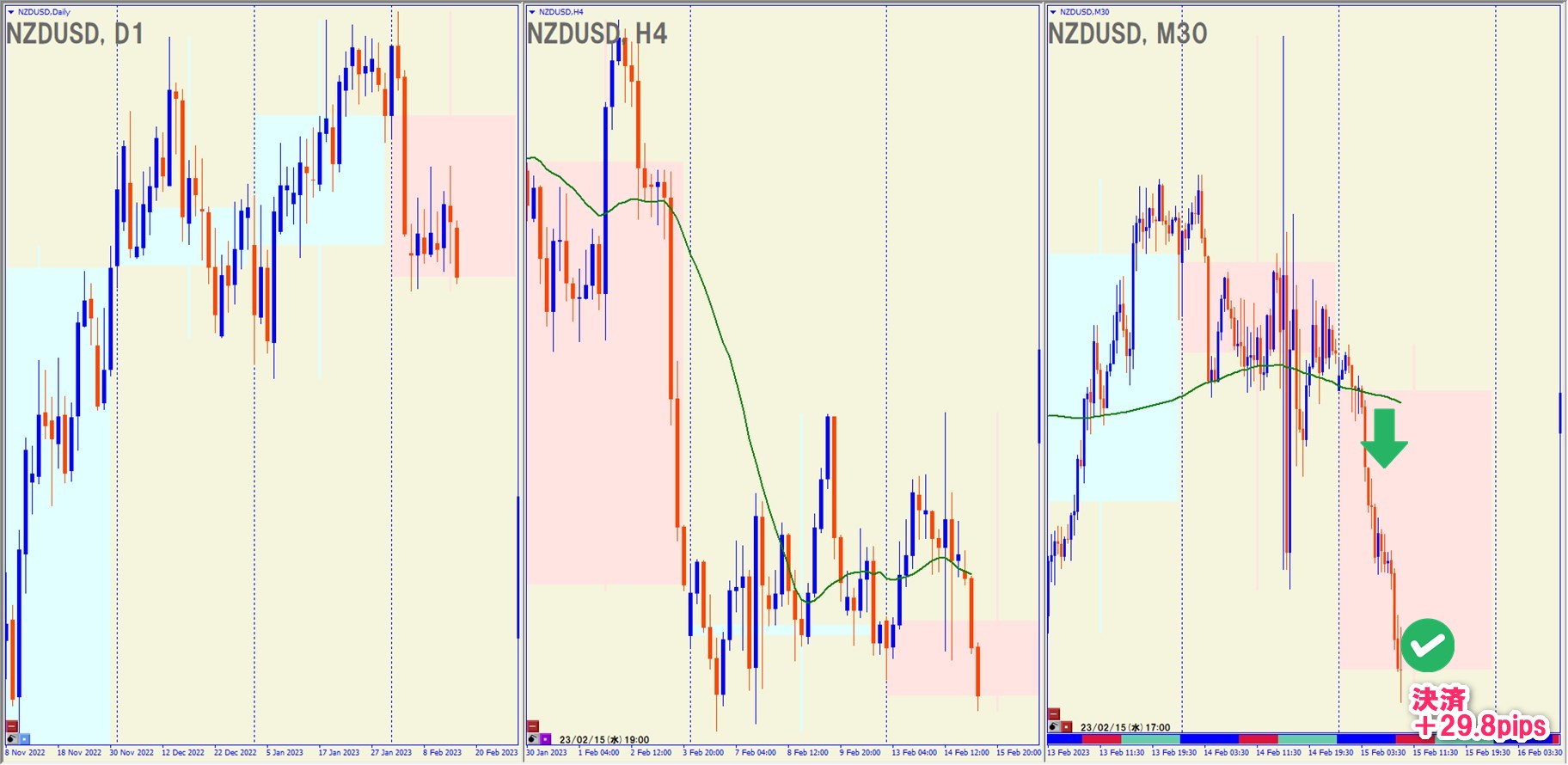 2023.2.15(水)11:30 NZDUSD ショート +29.8pips