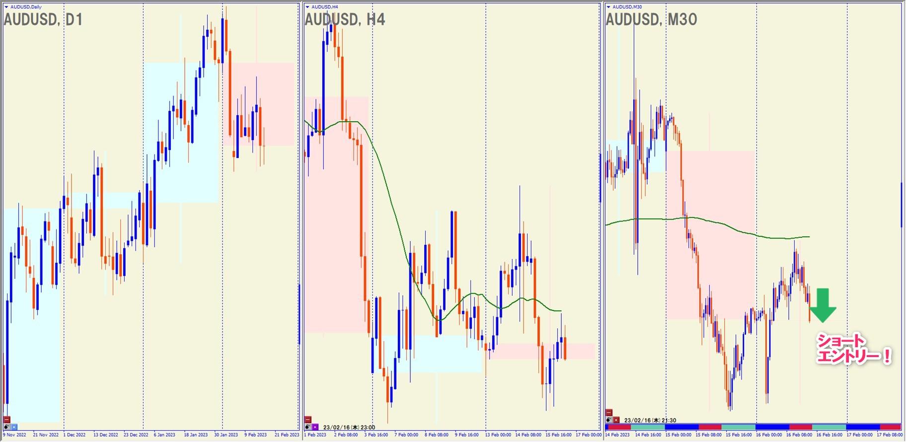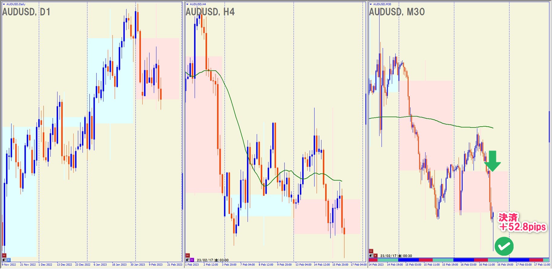 2023.2.16(木)21:30 AUDUSD ショート +52.8pips