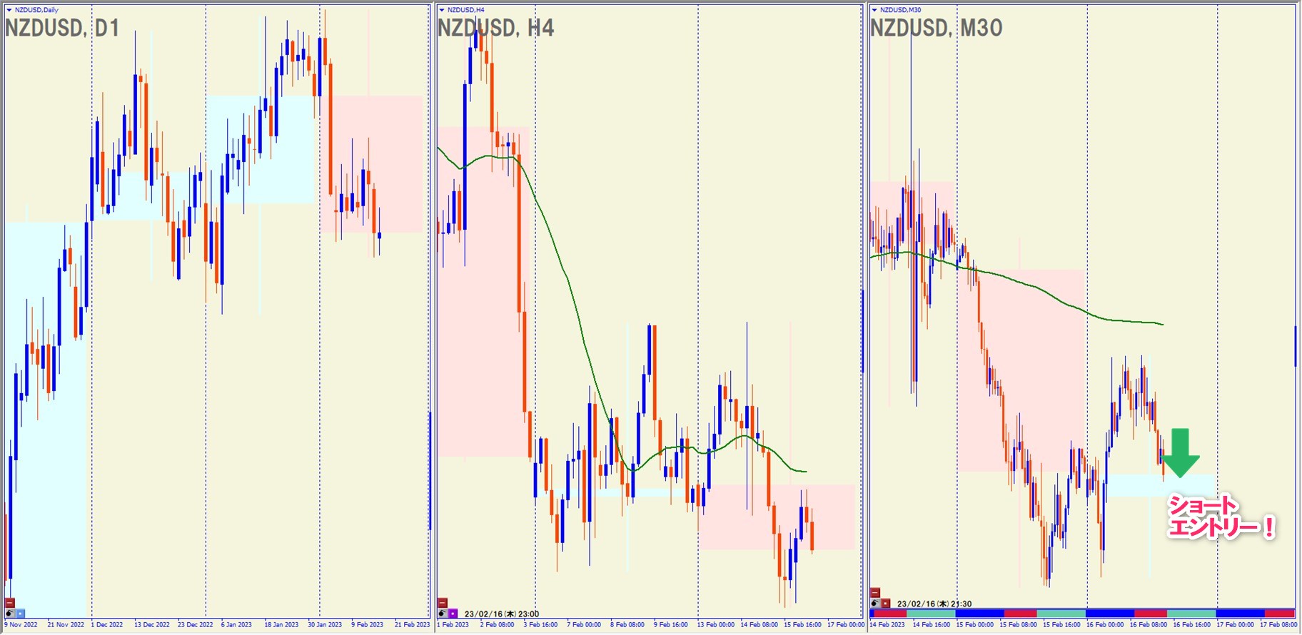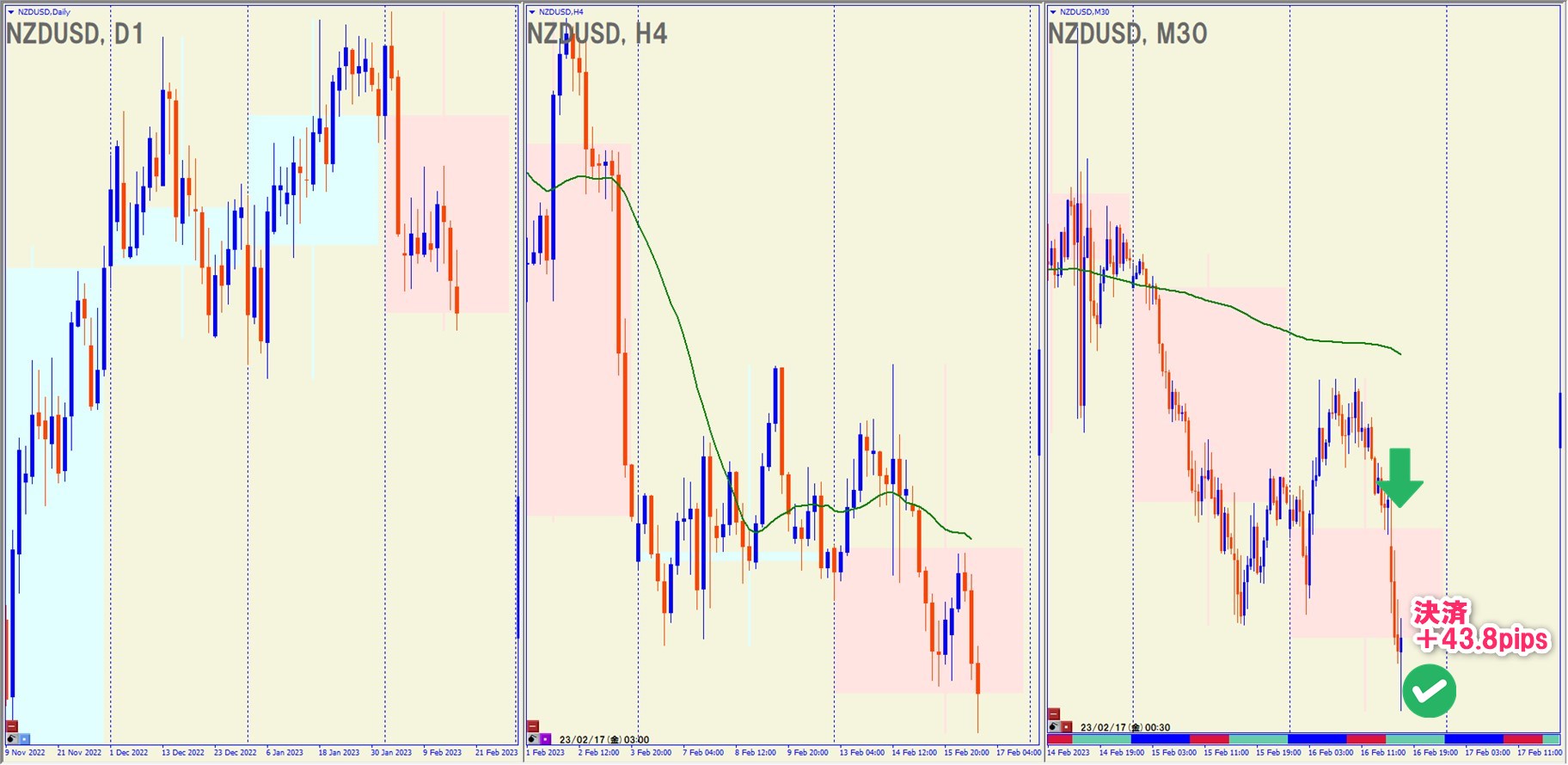 2023.2.16(水)21:30 NZDUSD ショート +43.8pips