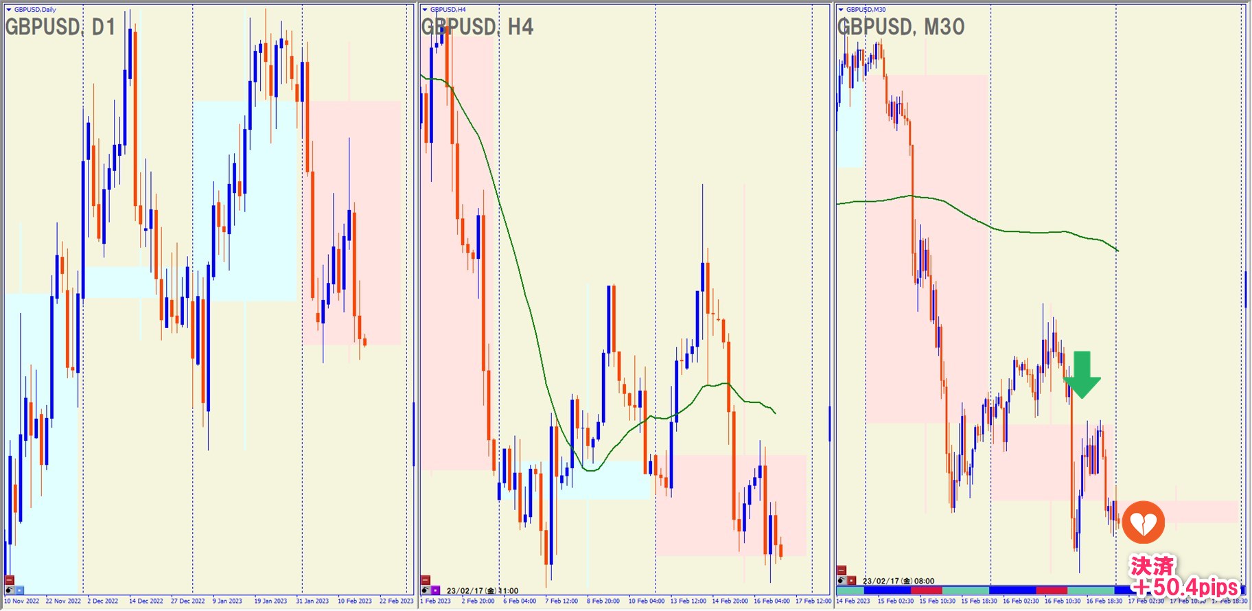 2023.2.16(水)22:00 GBPUSD ショート +50.4pips