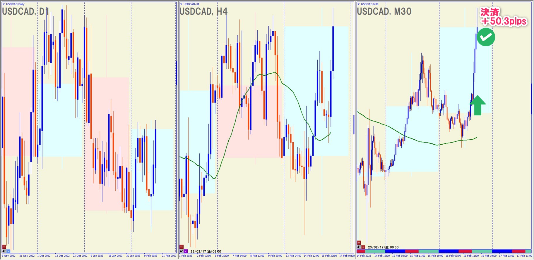 2023.2.16(水)22:00 USDCAD ロング +50.3pips