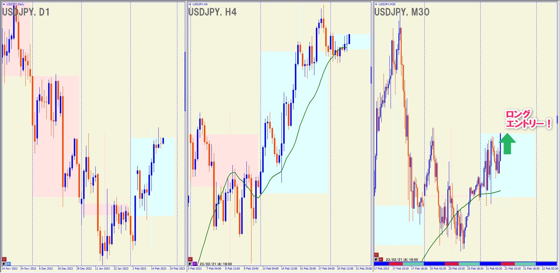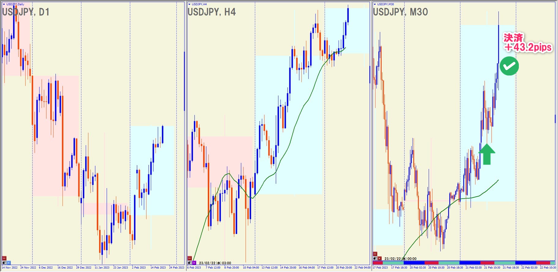 2023.2.21(火)16:00 USDJPY ロング +43.2pips
