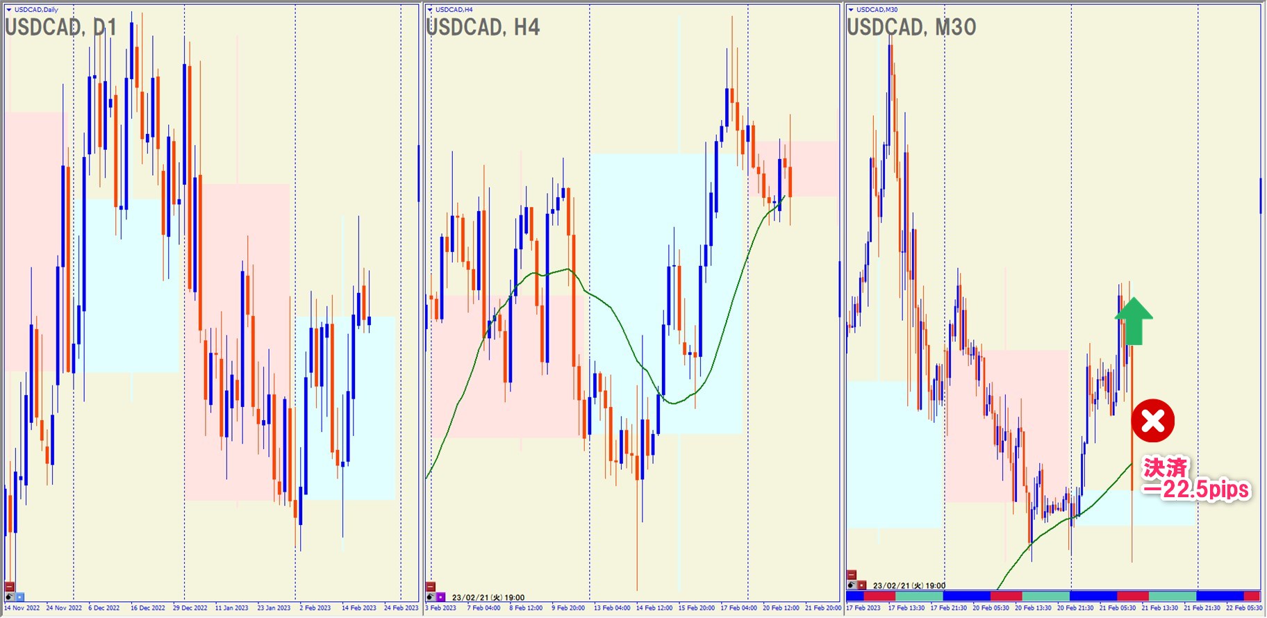 2023.2.21(火)16:30 USDCAD ロング -22.5pips