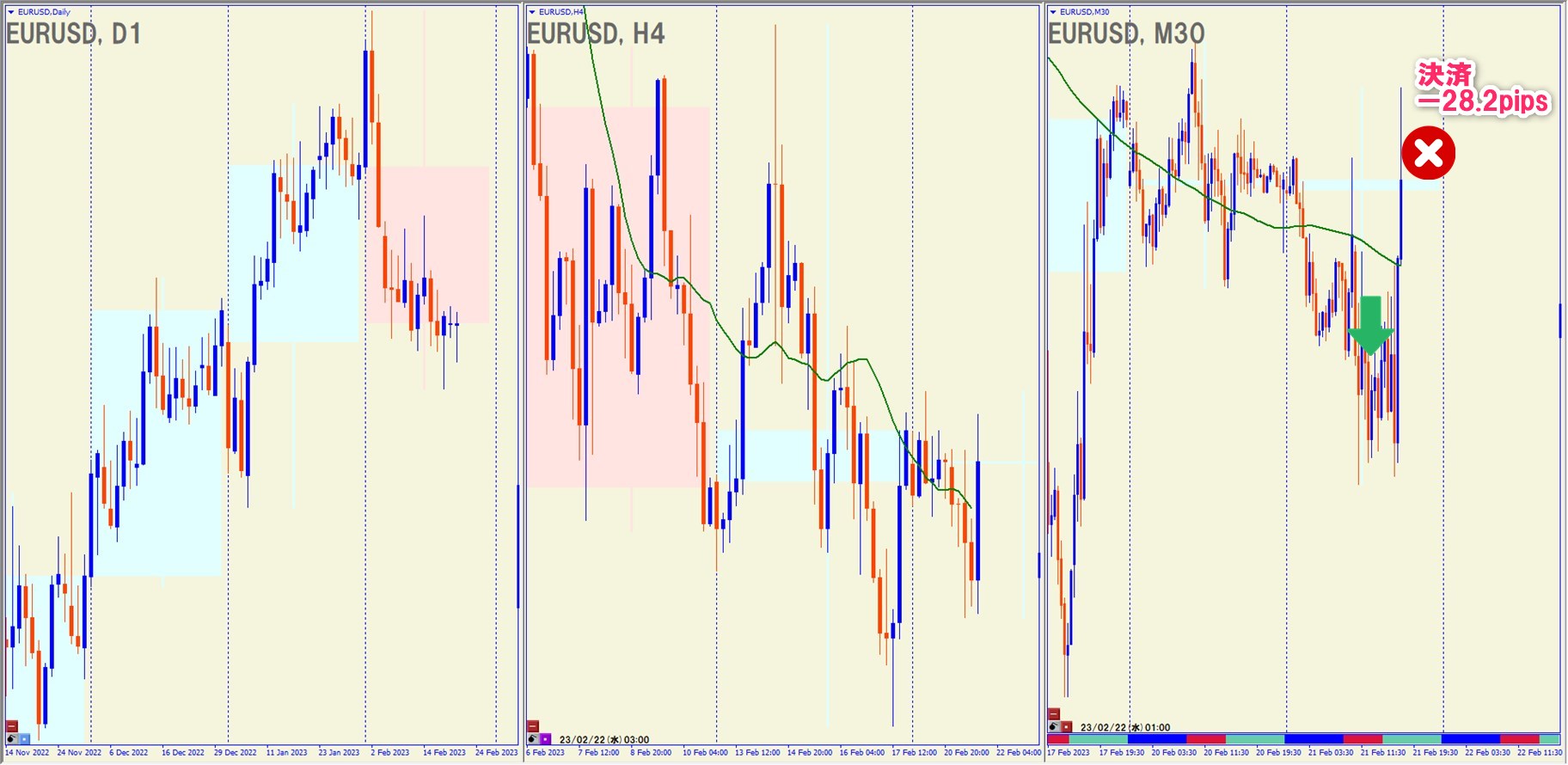 2023.2.22(水)18:00 EURUSD ショート +40.3pips
