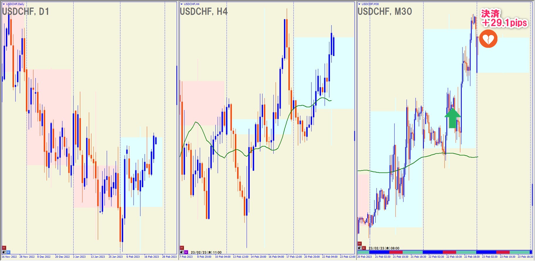 2023.2.22(水)18:00 USDCHF ロング +29.1pips