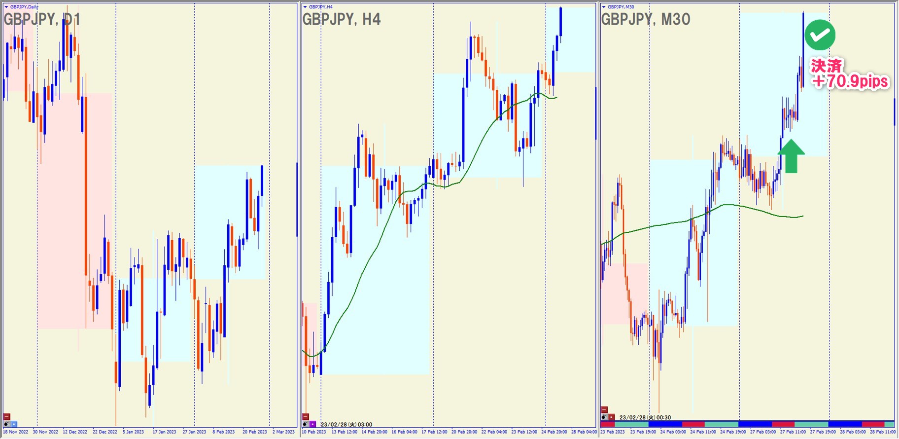 2023.2.27(月)18:30 GBPJPY ロング +70.9pips
