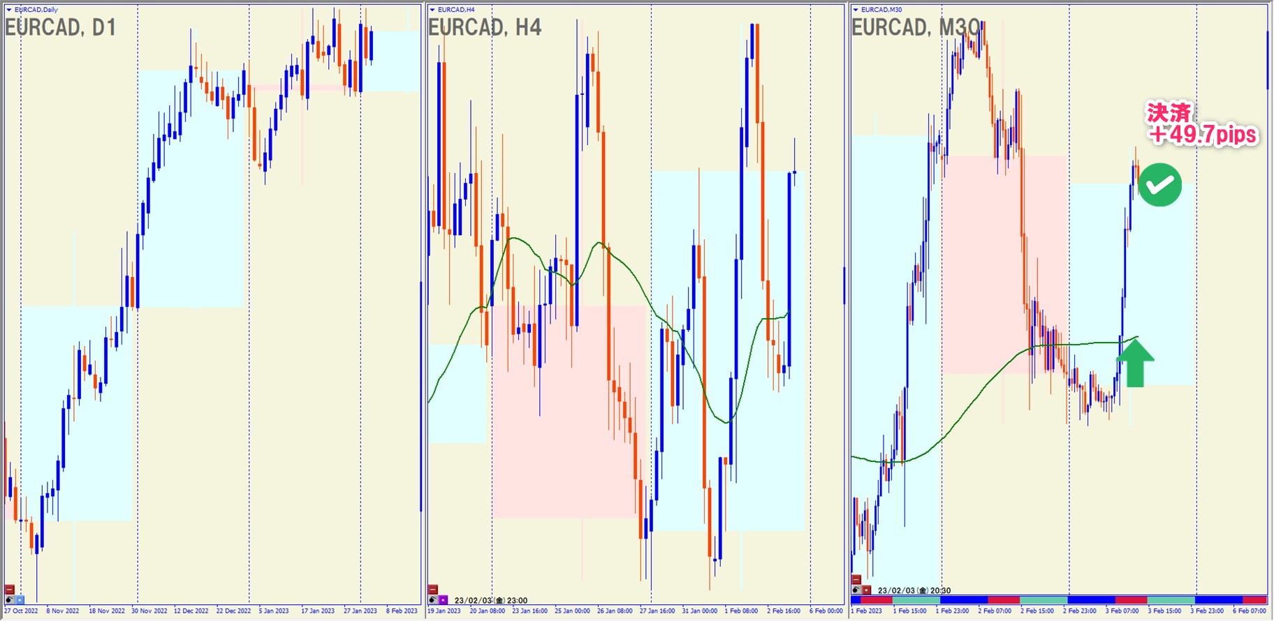 2023.2.3(金)17:00 EURCAD ロング +49.7pips
