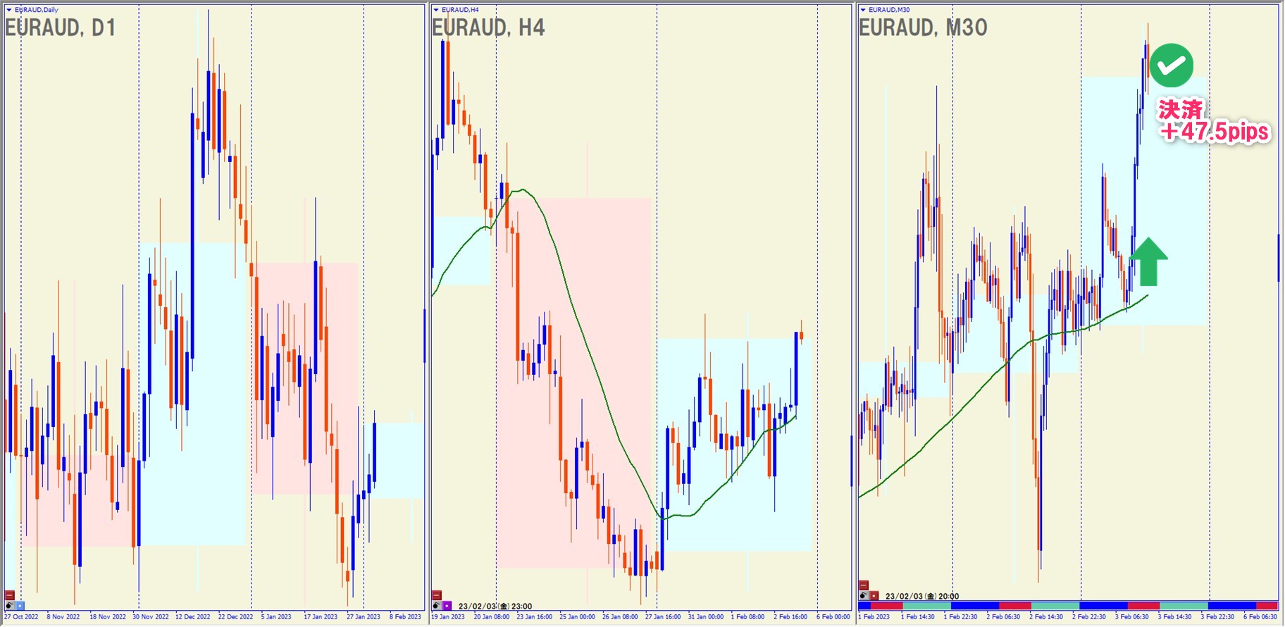 2023.2.3(金)17:00 EURAUD ロング +47.5pips