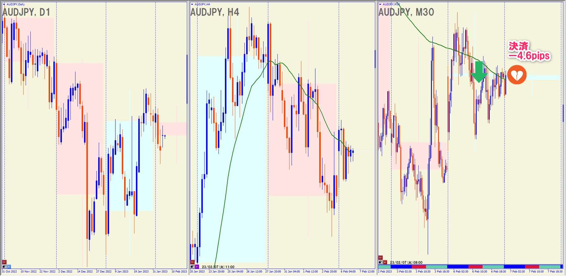 2023.2.6(月)18:00 AUDJPY ショート -4.6pips