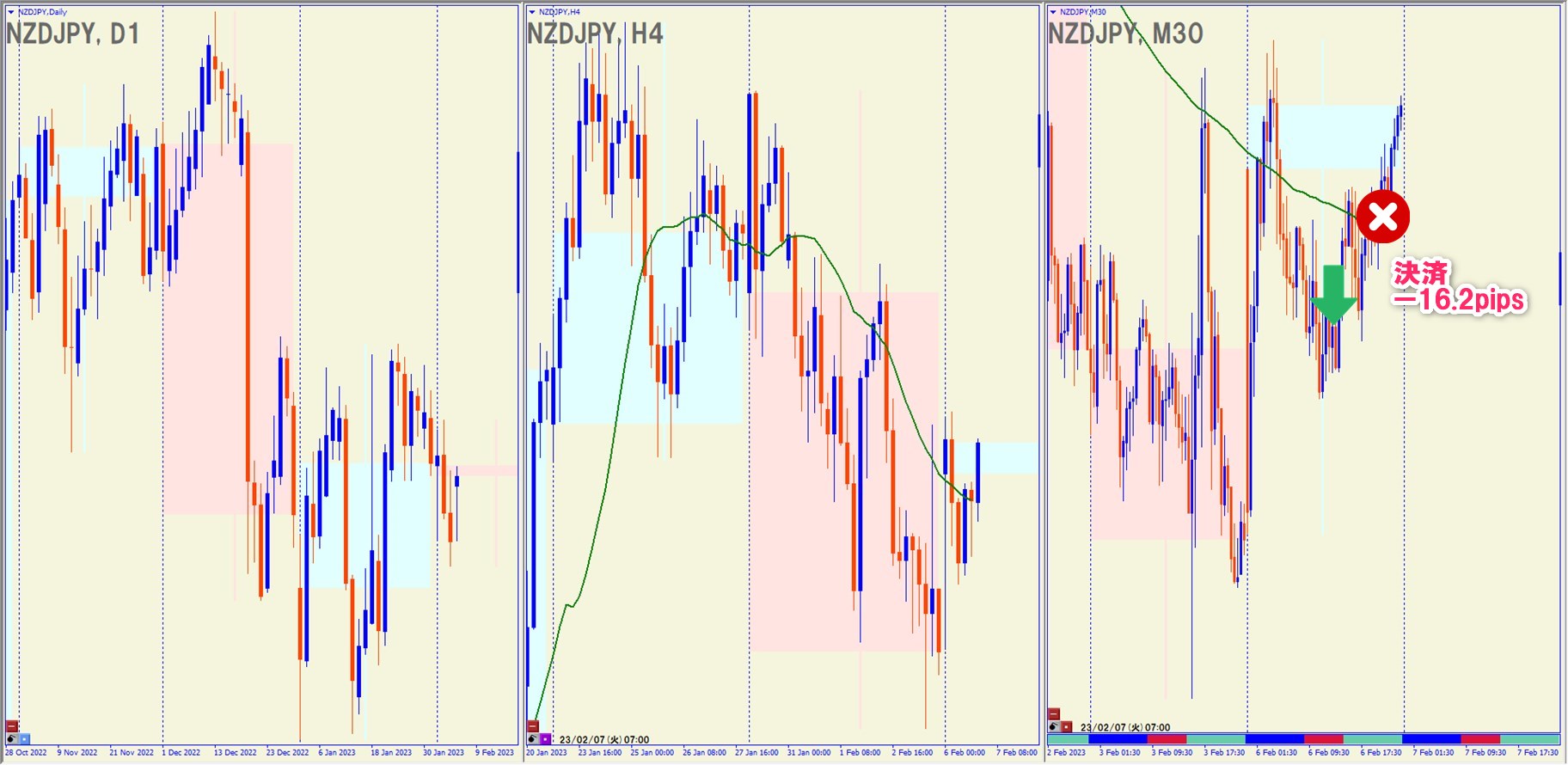 2023.2.6(月)18:00 NZDJPY ショート -16.2pips