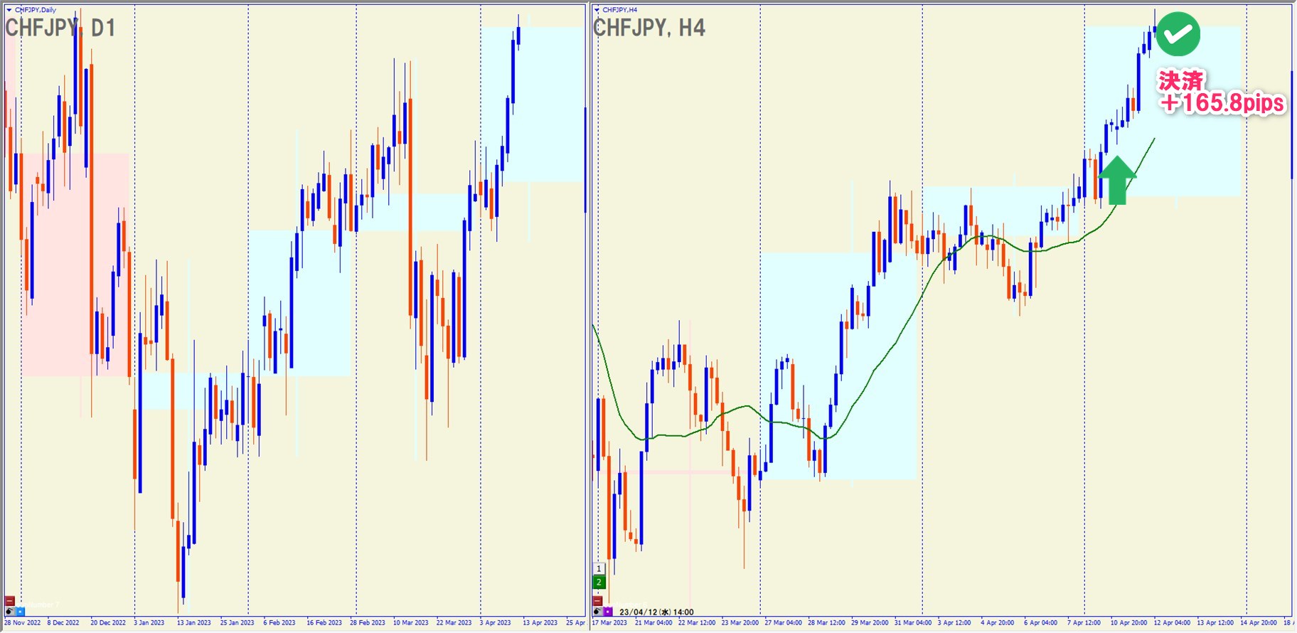 2023.4.10(月)22:00 CHFJPY ロング +165.8pips