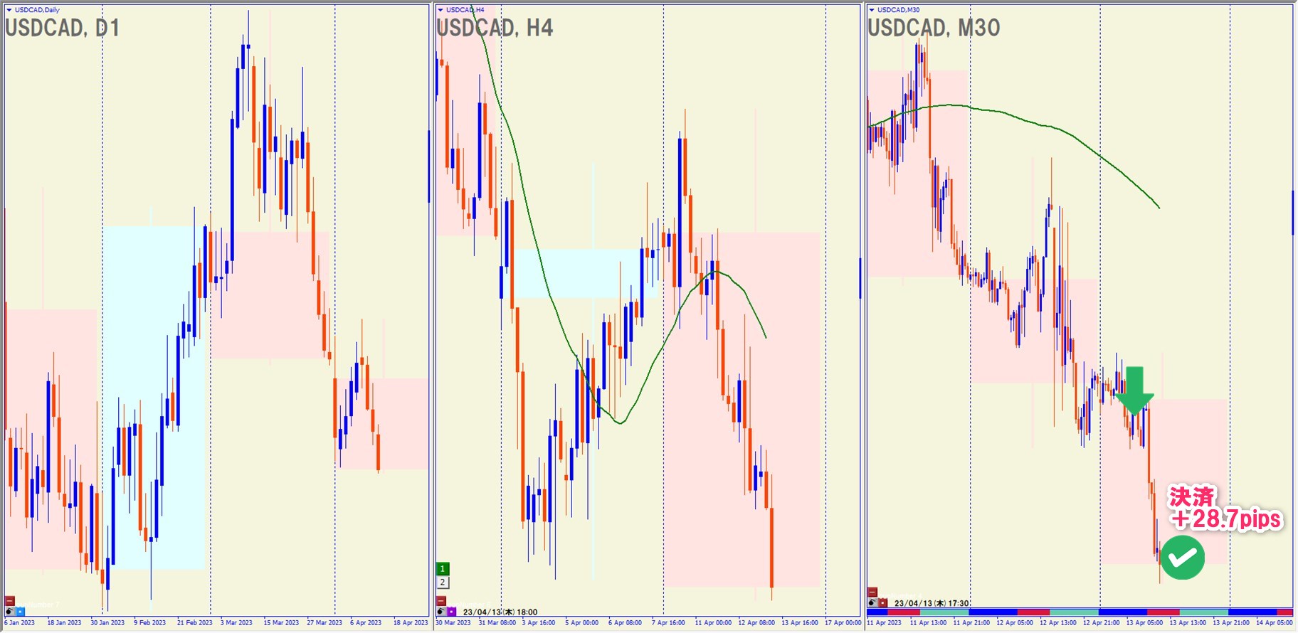 2023.4.13(木)11:00 USDCAD ショート +28.7pips