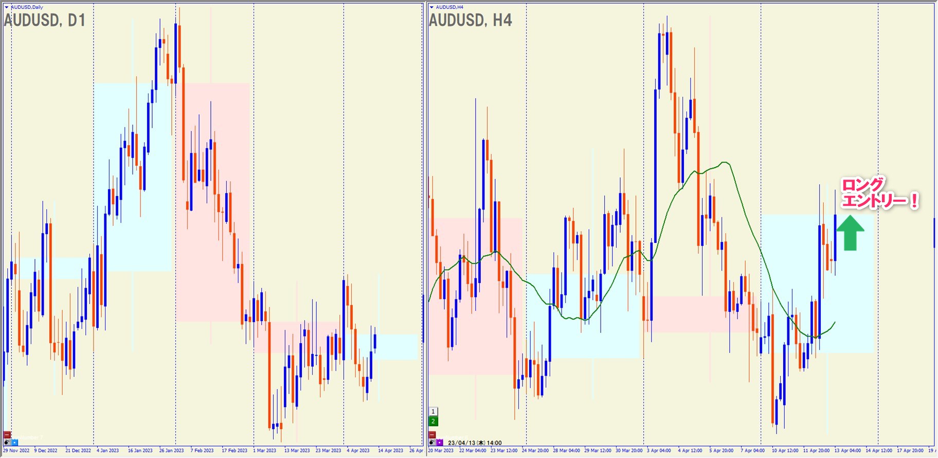 2023.4.13(木)14:00 AUDUSD ロング +55.5pips