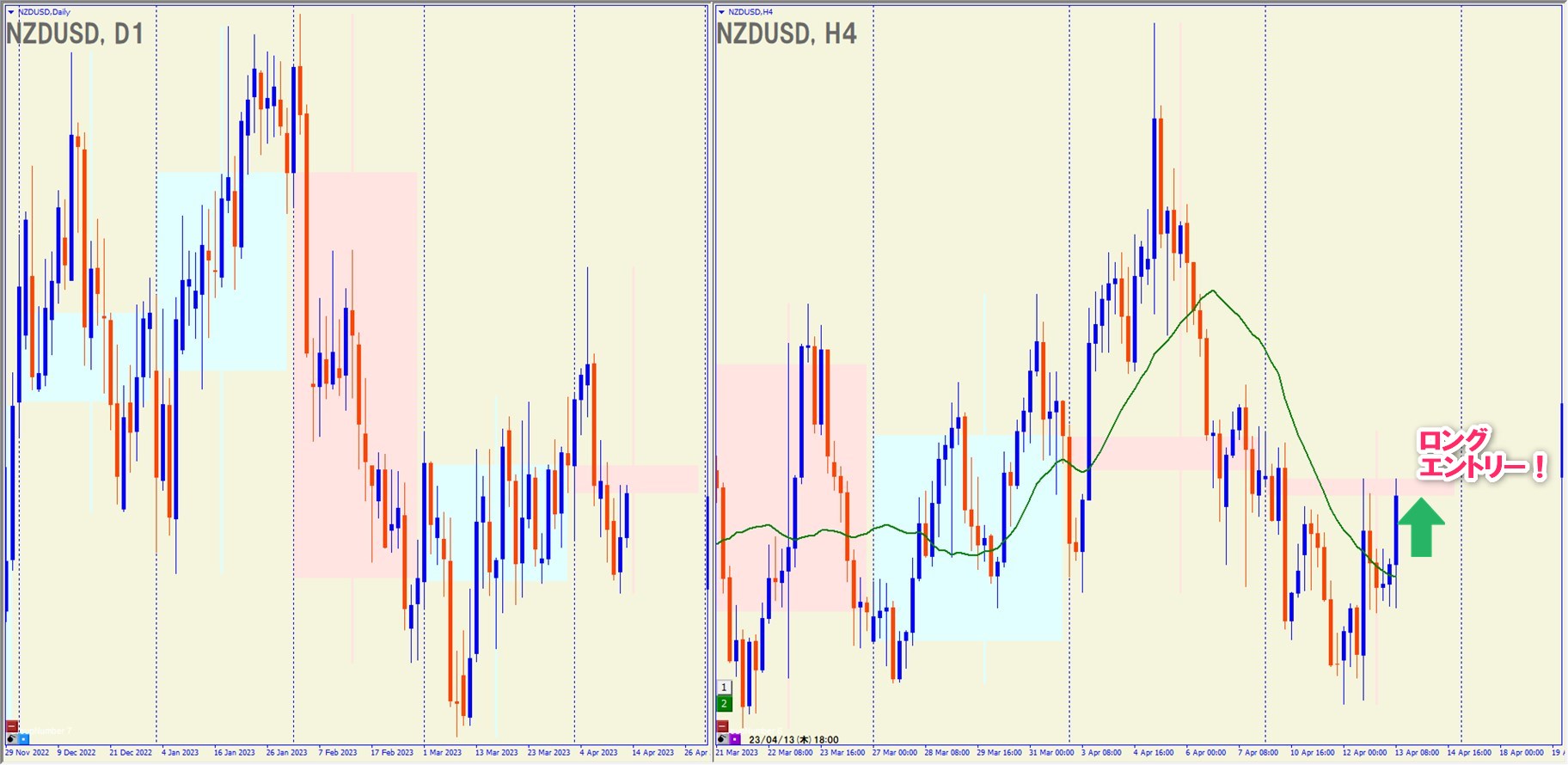 2023.4.13(木)18:00 NZDUSD ロング +73.2pips