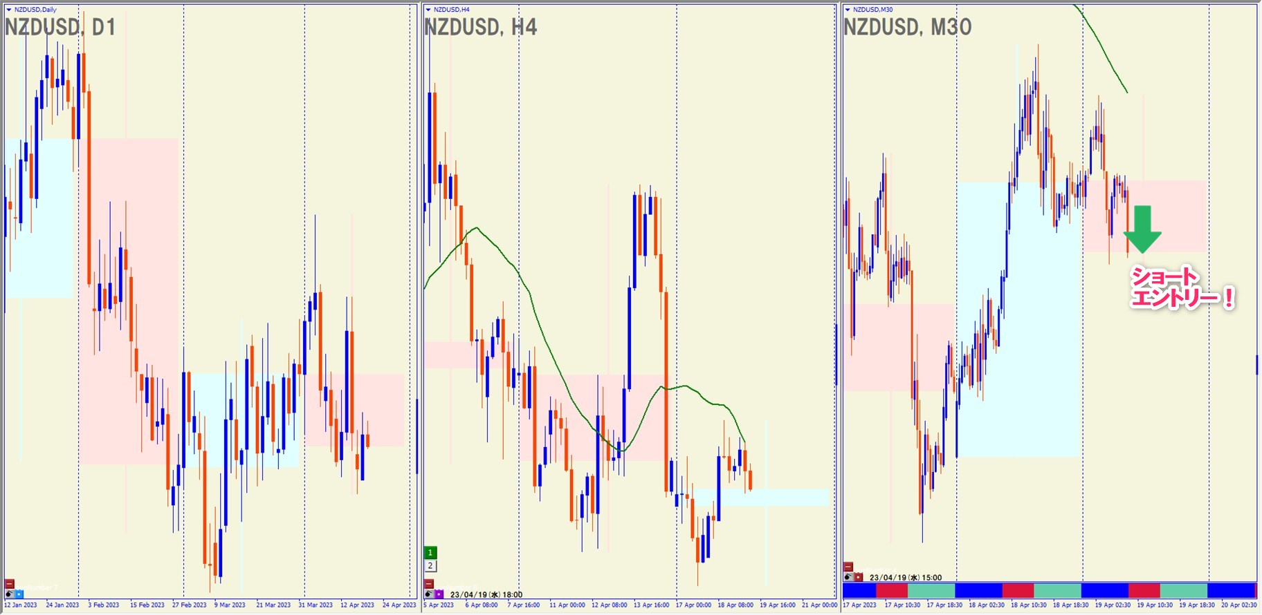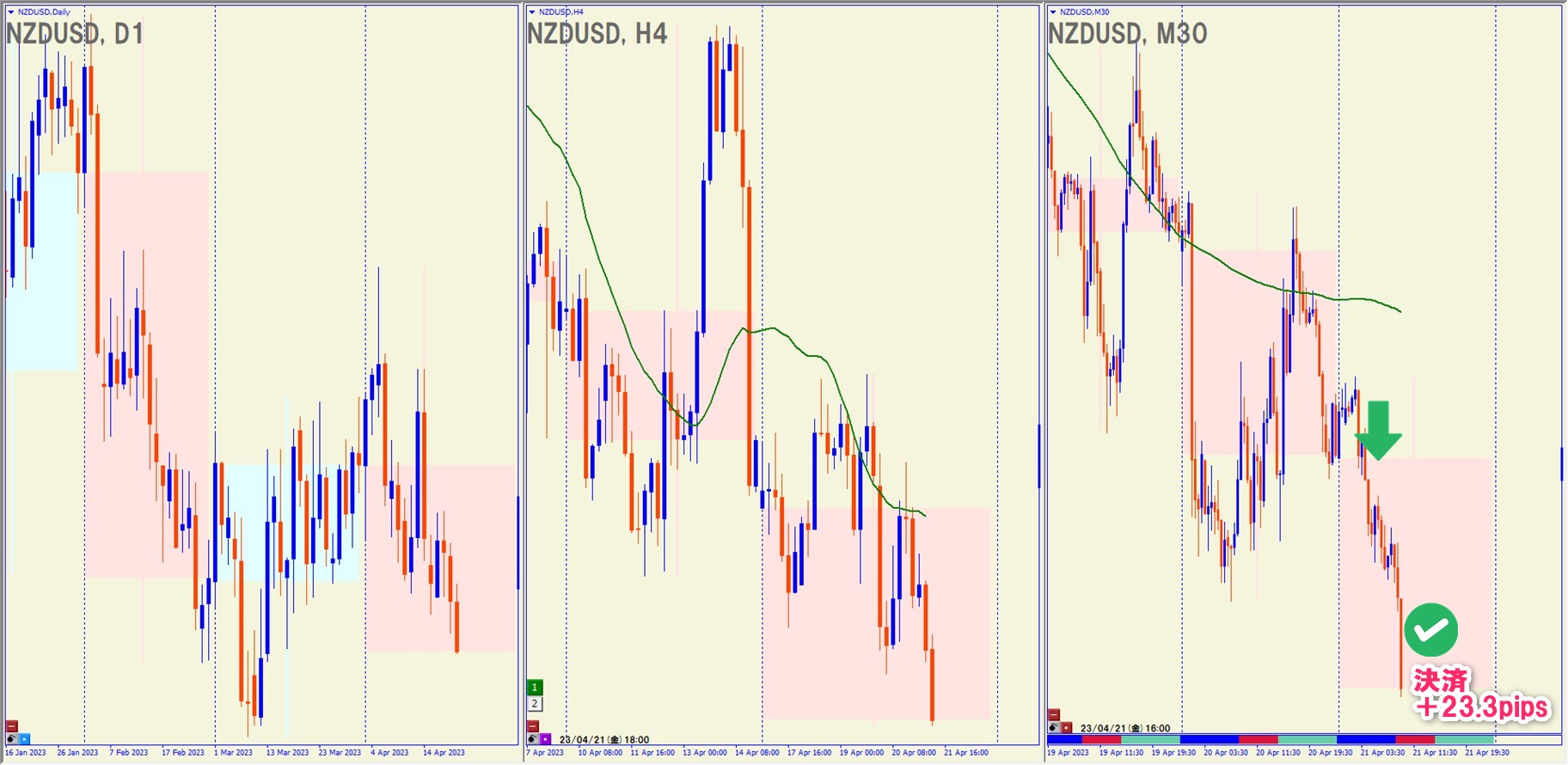 2023.4.21(金)9:30 NZDUSD ショート +23.3pips