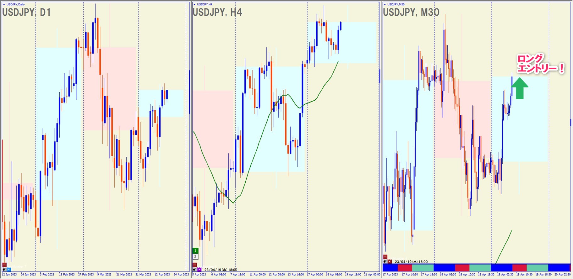 2023.4.19(水)15:00 USDJPY ロング +39.9pips