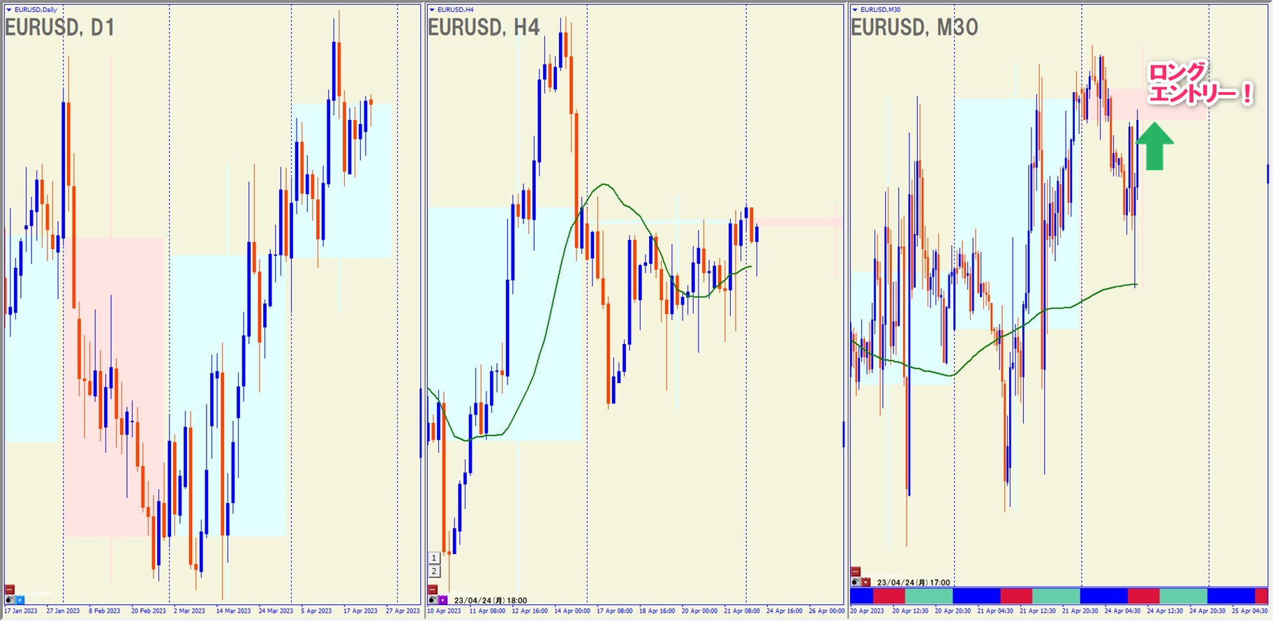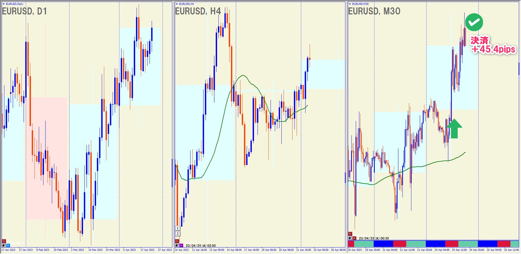 2023.4.24(月)17:00 EURUSD ロング +45.4pips