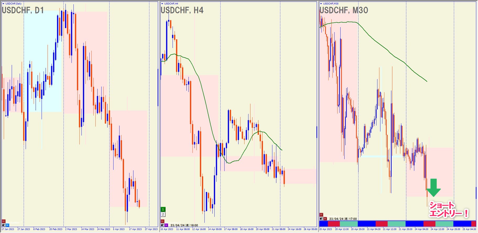2023.4.24(月)17:00 USDCHF ショート +32.1pips