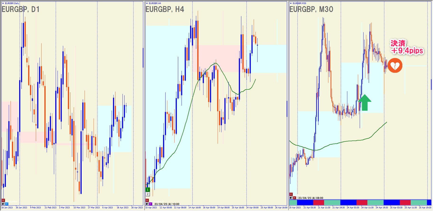 2023.4.24(月)17:30 EURGBP ロング +9.4pips
