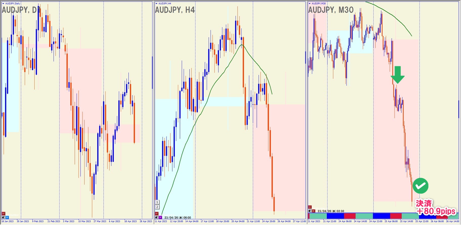 2023.4.25(火)16:30 AUDJPY ショート +80.9pips