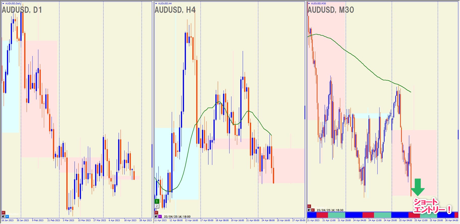 2023.4.25(火)16:30 AUDUSD ショート +40.5pips