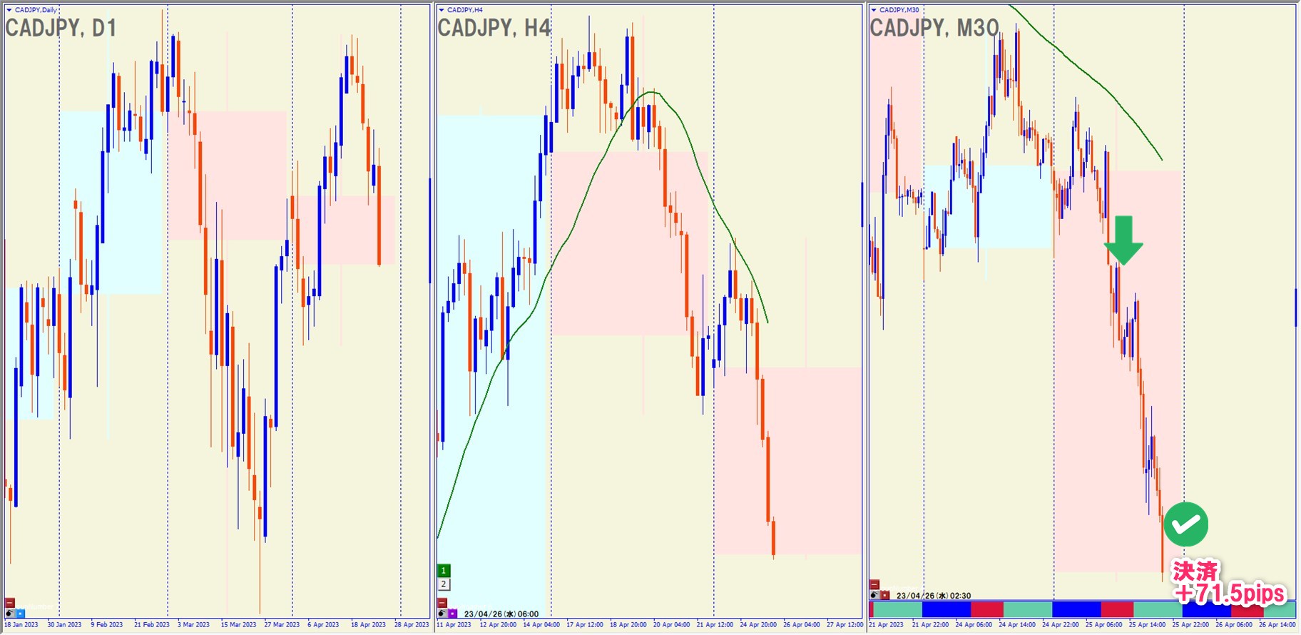 2023.4.25(火)16:30 CADJPY ショート +71.5pips