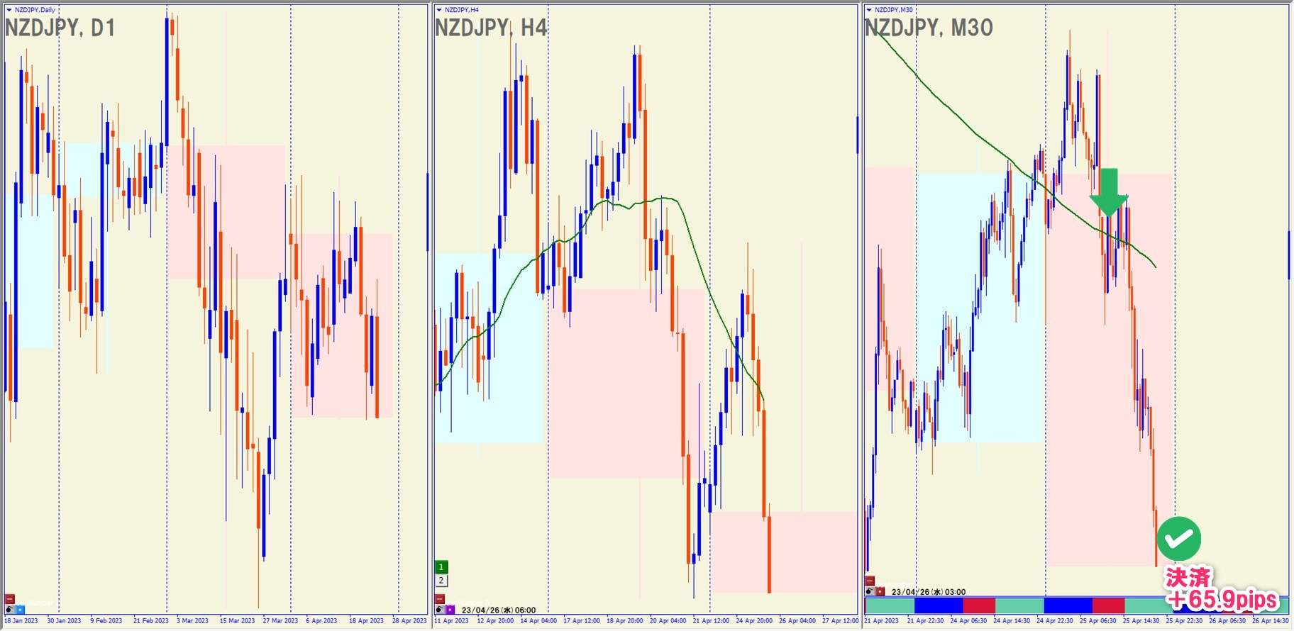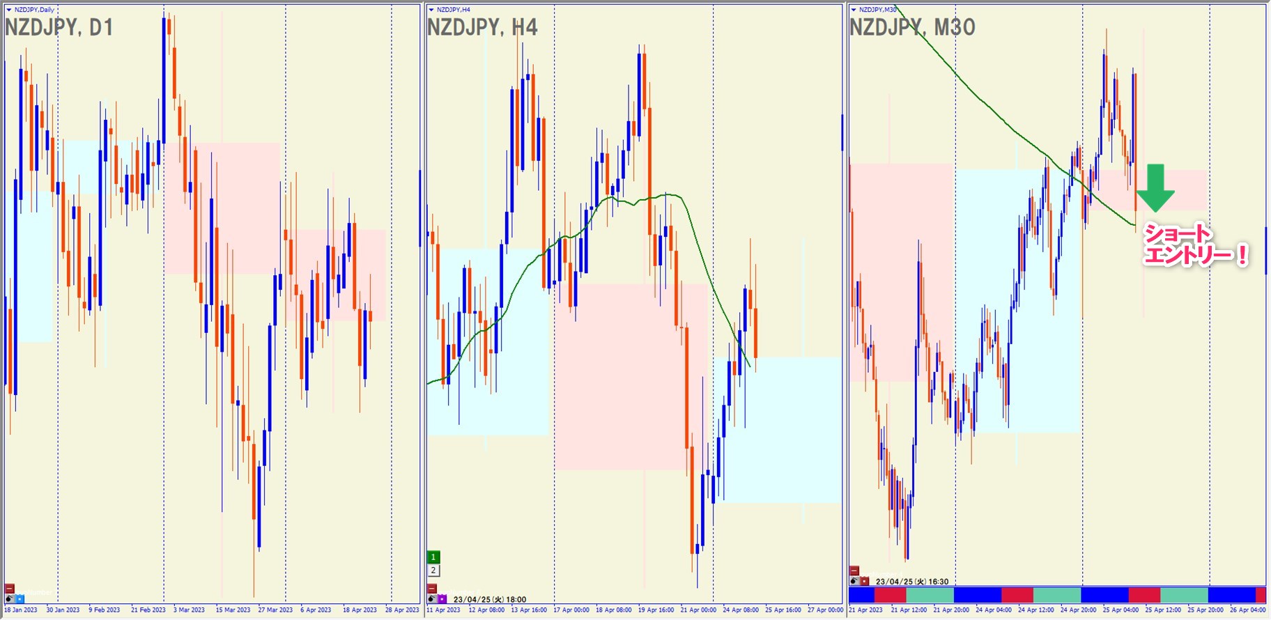 2023.4.25(火)16:30 NZDJPY ショート +65.9pips