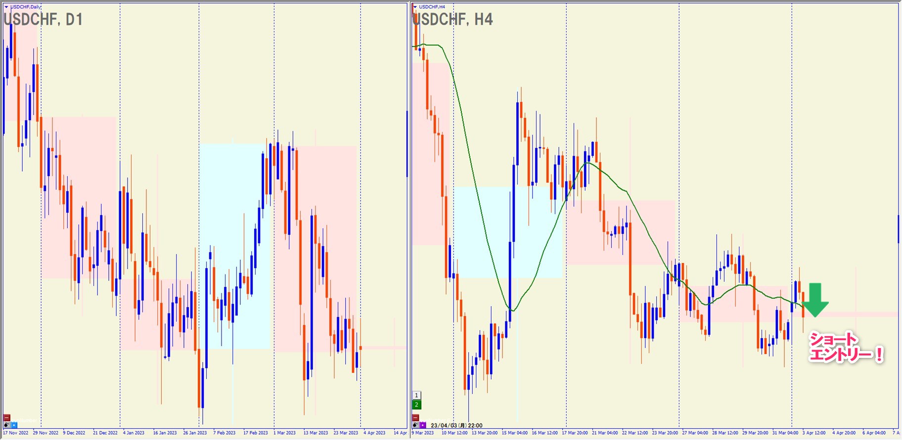 2023.4.3(月)22:00 USDCHF ショート +44.6pips