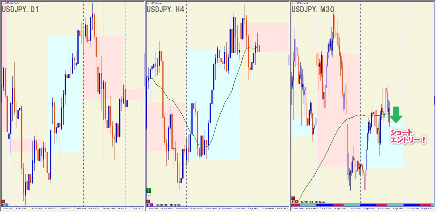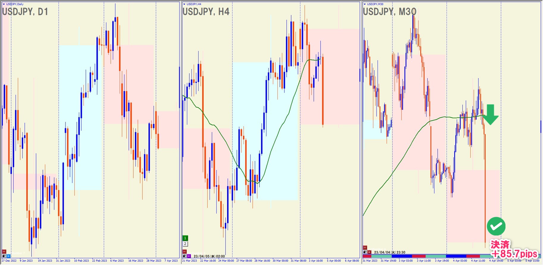 2023.4.4(火)22:30 USDJPY ショート +85.7pips