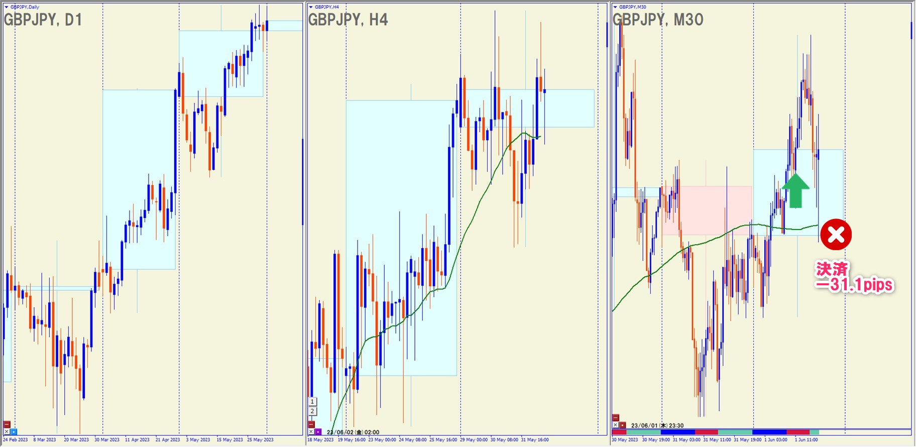 2023.6.1(木)15:00 GBPJPY ロング -31.1pips