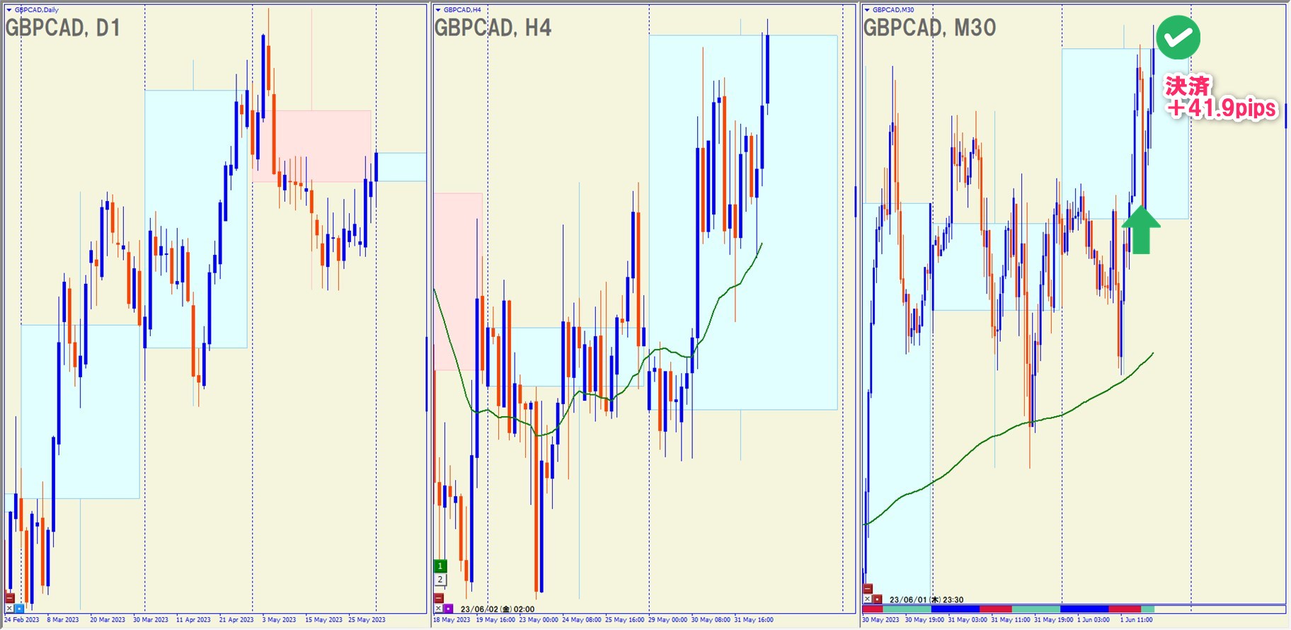 2023.6.1(木)19:00 GBPCAD ロング +41.9pips
