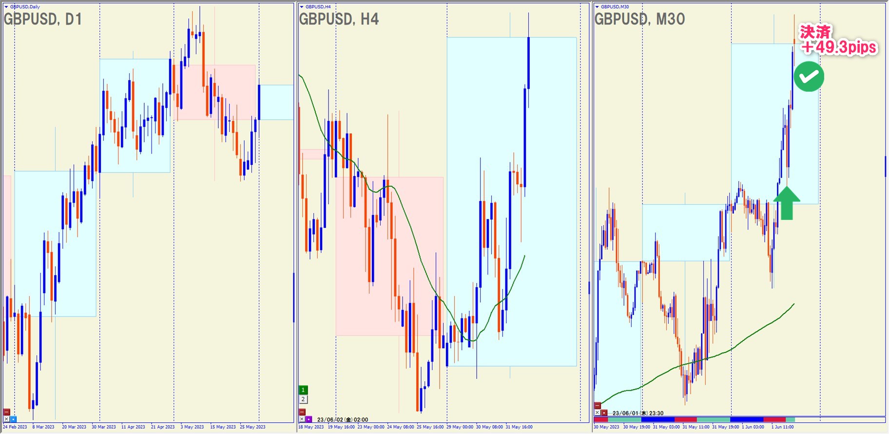 2023.6.1(木)19:00 GBPUSD ロング +49.3pips