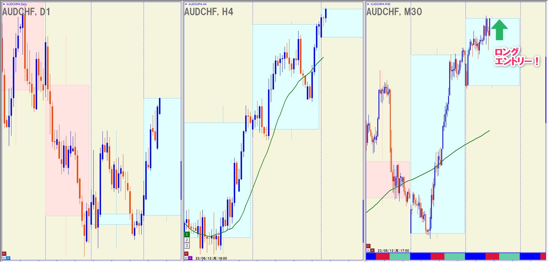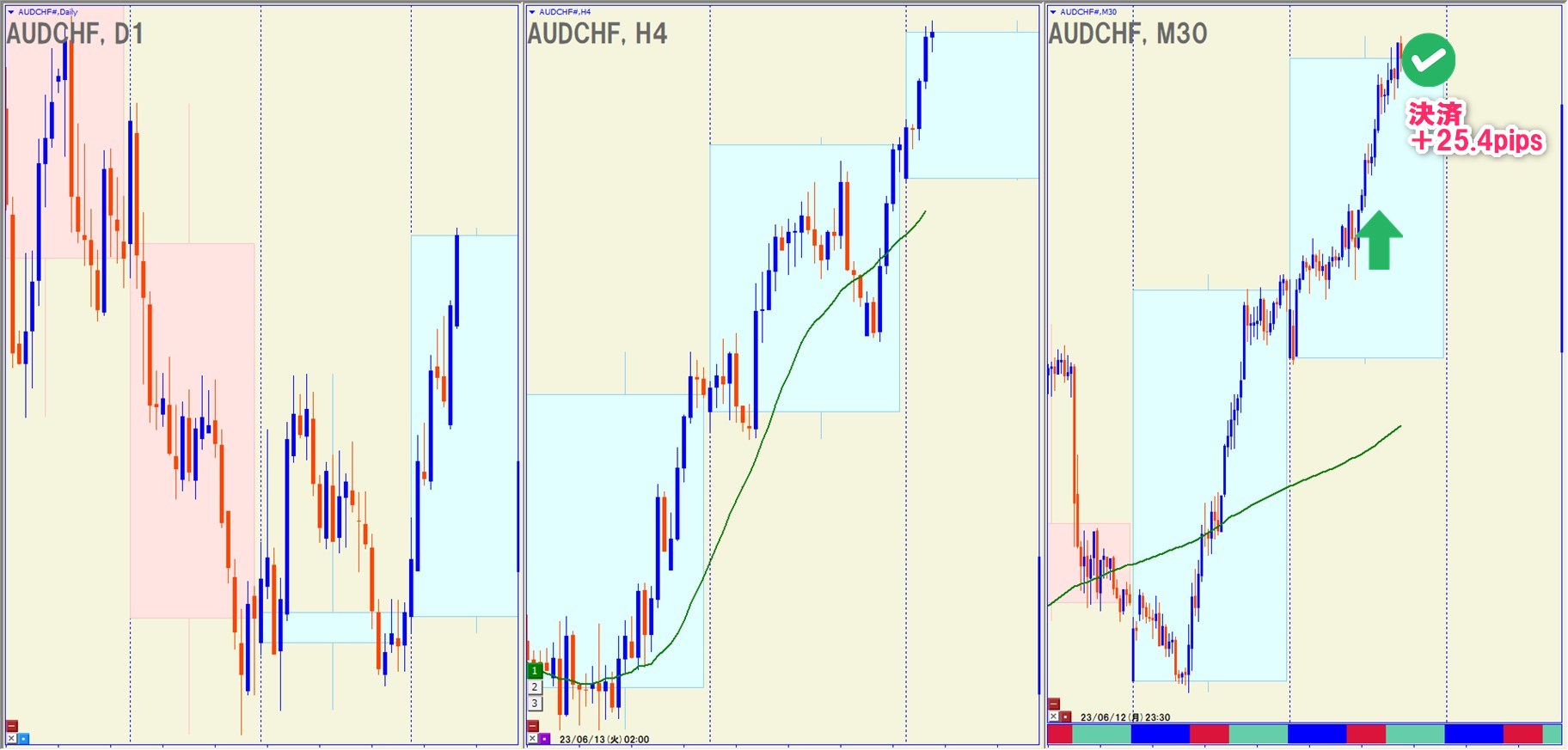 2023.6.12(月)17:00 AUDCHF ロング +25.4pips